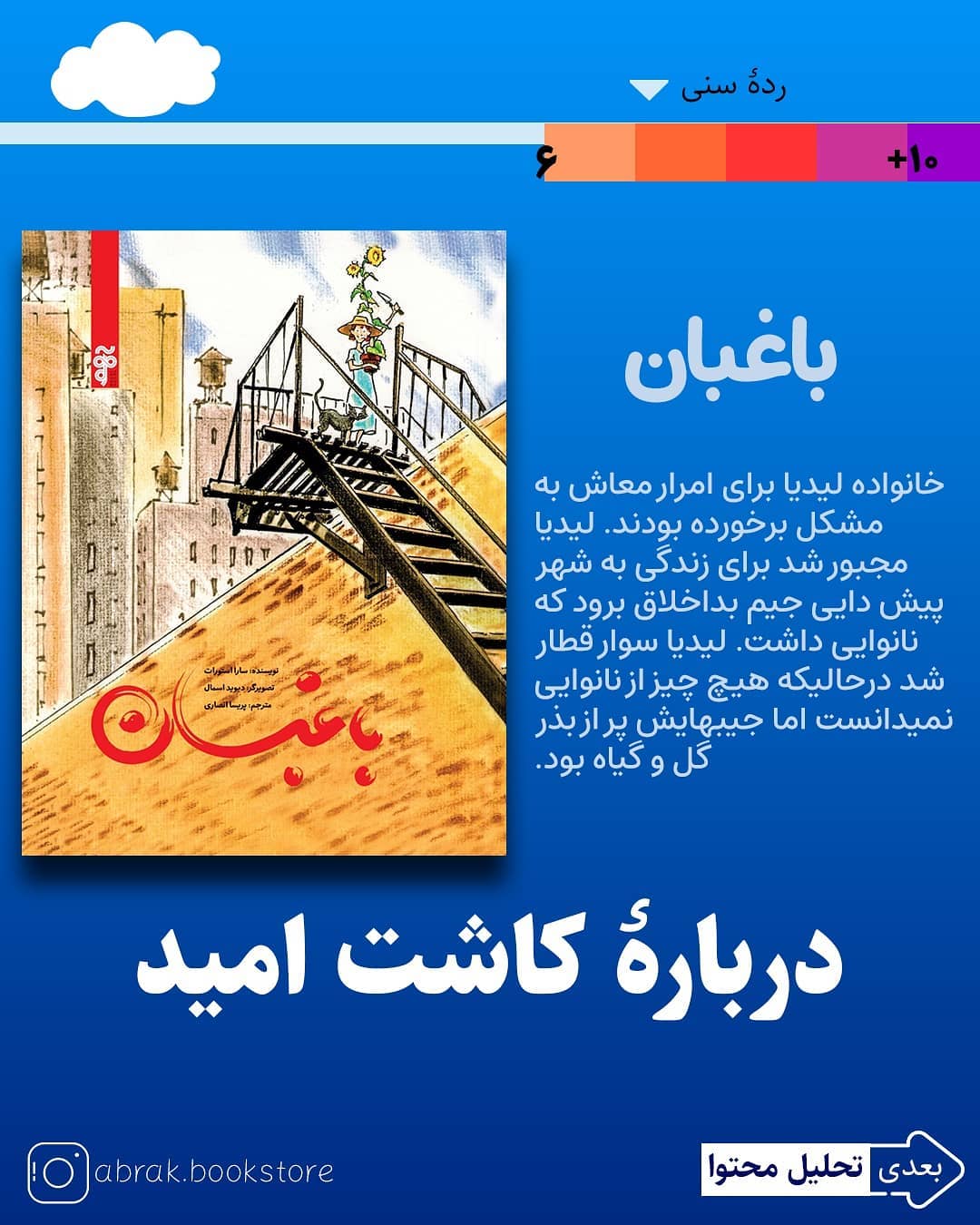 🌧️در روزهای سخت اقتصادی هم می توان شاد بود، شاد زندگی کرد و دیگران را هم شاد کرد ⭐کتابی عالی با قالب نامهنگاری برای کاشت امید ✔️رفتن دختری از پیش خانوادهاش به شهری دیگر به دلیل مشکلات مالی، مسئله بسیار غم انگیزی است اما میتواند این غم روی دیگری هم داشته باشد. اگر دختری که با این چالش مواجه شده دستان سبز و قلبی پرامید داشته باشد. قالب نامه نگاری قالبی امیدوارانه است. همانطور که امید دارد نامه به دست خانوادهاش برسد و راه ارتباطی او باشد امید دارد این مشکلات تمام شود و نزد خانوادهاش برگردد و هم امید دارد زمین را سبز نگه دارد و هم امید دارد دایی جیم بخندد. 📕نام کتاب: #باغبان ✏️نویسنده: #سارا_استوارت ناشر: #آرما #نشر_آهو 👫رده سنی: 6 تا 11 سال 💵قیمت: 30هزارتومان 📩برای تهیه کتاب دایرکت بدهید ✔️به همراه کاربرگ و راهنمای فکرورزی رایگان😍 🔔تحلیل محتوای کتاب را در اسلایدهای داخلی ببینید @abrak.bookstore @abrak.bookstore 🌧️🌧️🌧️🌧️🌧️🌧️🌧️ #کتاب_کودک #کتاب #معرفی_کتاب #معرفی_کتاب_کودک #پیشنهاد_کودک #باغبان #سارا_استوارت #آرما #نشر_آهو #باغ #امید #تربیت_فرزند #کتاب_خوب #پریسا_انصاری #گل_کاری #پرورش_گیاه #کودک_محیط_زیستی #محیط_زیست #روز_زمین #درختکاری