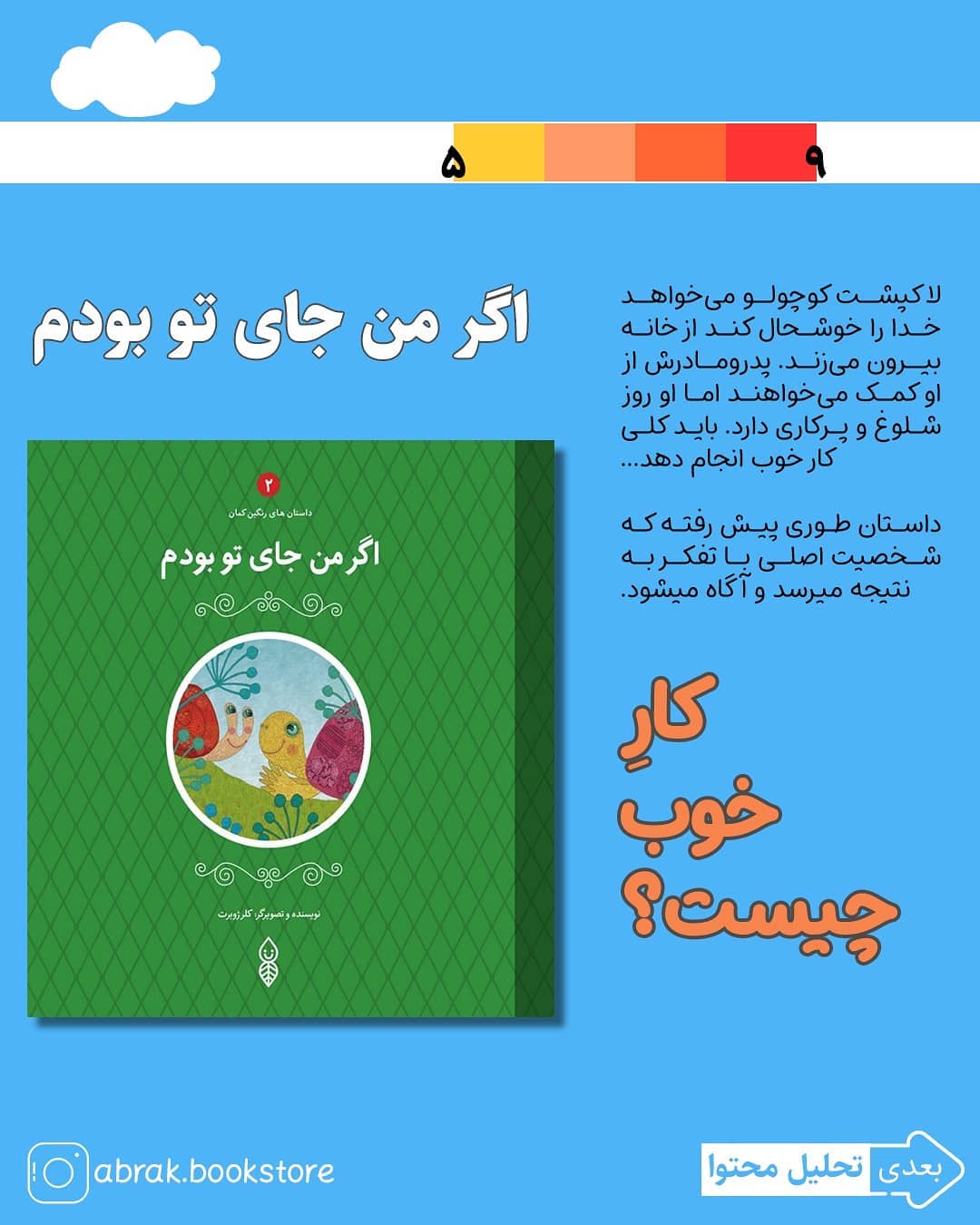 خلاصه داستان: لاکپشت کوچولو میخواهد خدا را خوشحال کند از خانه بیرون میزند. پدرومادرش از او کمک میخواهند اما او روز شلوغ و پرکاری دارد. باید کلی کار خوب انجام دهد... ✔️این کتاب، از مجموعه 5 جلدی داستانهای رنگین کمان است. 💵قیمت مجموعه 5جلدی با جلدسخت 70هزارتومان 📩برای تهیه این کتاب دایرکت بدهید ⭐به همراه کاربرگ و راهنمای فکرورزی رایگان نویسنده: کلر ژوبرت ناشر: شبنم رده سنی: 5تا9 سال @abrak.bookstore @abrak.bookstore 🌧️🌧️🌧️🌧️🌧️🌧️🌧️ #کلر_ژوبرت #داستان_کودک #کتاب_کودک #ابرک #کتاب #کتابفروشی_کودک #معرفی_کتاب #معرفی_کتاب_کودک #پیامبر #داستان_دینی #کتاب_دینی #لاکپشت #تربیت_فرزند