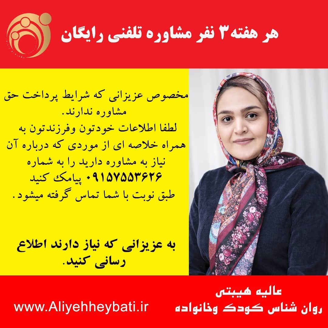 الوعده وفا😊 به امید خدا هر هفته دوشنبه صبح ها در خدمت عزیزانی هستم که درباره کودکانشون سوالاتی دارند وسعی میکنم در حد توانم پاسخگو باشم... ♦️لطفا اگر شرایط پرداخت حق مشاوره دارید اجازه بدین عزیزانی که این توان رو ندارن از این فرصت استفاده کنن ملاک فقط پیام شماست🌹 #فرزندپروری #روانشناسی_کودک #تربیت_کودک #آموزش_والدین #درمان_کودک #درمانگر_تخصصی_کودک#عالیه_هیبتی #بیرجند_شهر_من