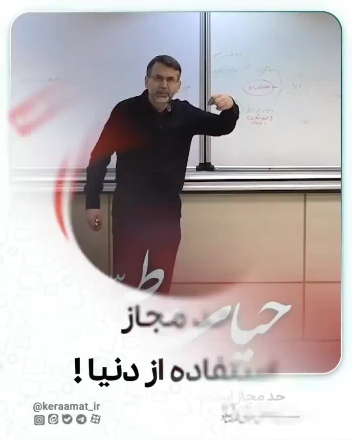 . 🔰 *حد مجاز استفاده از دنیا؟! * 🔻حد مجاز استفاده ما از دنیا چه قدر است؟ ✴️ اول اینکه دنیا هدف ما قرار نگیرد. ✴️ دوم آنکه وابستگی به آن ایجاد نشود. مثلا اگر یک ساعت قشنگ خریدیم اما متوجه میشویم با فروختن آن ساعت میتوانیم مشکل کسی را حل کنیم، آن کار را انجام دهیم. ✴️ سومین نکته در حد استفاده از دنیا اینکه نیازهای اولیه ما را برطرف کند ✴️ و چهارم اینکه از معدل عمومی جامعه فراتر نرود. ♨️ اسلام میگوید لباس شهرت نپوشید، خانه شهرت و وسیله شهرت نداشته باشید. ☑️ مثلا وقتی در زندگی شهری مثل تهران، یک زوج میتواند در یک خانه شصت متری زندگی خود را شروع کند، زندگی در خانه دوهزار متری و در طبقه سی ام یک برج، خروج از معدل جامعه است. "استاد مجید اسماعیلی" *دوره حیات طیبه* ⚠️ ما در کرامت، برایتان از اندیشه های مختلف تربیتی می گوییم، چراکه نگاه نقادانه ی شما ارزشمند است. ⚠️ #استاد_اسماعیلی #دوره_آموزشی #آموزش #اكسپلور #محبت #تربیت #کودک #نوجوان #تربیت_فرزند #دنیا #کرامت