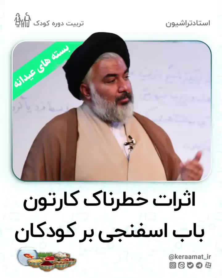 . 📍اثرات خطرناک کارتون باب اسفنجی بر کودکان! ✅باب اسفنجی هفت شخصیت دارد که نماد هفت گناه است. مثلاً دروغگویی، لجبازی، بد اخلاقی و ... . علاوه بر این نماد تجرد زیستی است. این شخصیت کارتونی از زیر بوته به عمل نیامده! پدر و مادر دارد، اما با خانواده زندگی نمیکند. پدرش به او میگویند که بیا برگرد خانه. اما میگوید، این جوری و در کنار دوستان خوشتر هستیم! یا نماد همجنس گرایی است و از طرف مراکز همجنسگرایی مورد تشویق قرار گرفته چون زندگی با همجنس را ترویج میکند. علاوه بر این، جهان بینی الهی را مورد تردید قرار میدهد. مثلاً به دکتری متخصص به عنوان یک حکیم در پزشکی مراجعه میکند و نسخهای که دکتر میدهد، او را خوب نمیکند. اما یک بار سرش به دیوار میخورد و خوب میشود! بچهای که این کارتون در عمق وجودش رسوخ کرده، به راحتی، پیدایش ناگهانی جهان را می پذیرد. 🔖حجت الاسلام تراشیون. 📚" بسته آشنایی با کلیات تربیت دینی فرزند، کرامت ۲" ✔️ اطلاعات بیشتر و ثبت نام از طریق: https://www.keraamat.ir/product/koliate-tarbiate-dini/ 📌ما در کرامت، برایتان از اندیشه های مختلف تربیتی می گوییم، چراکه نگاه نقادانه ی شما ارزشمند است. #کرامت #تربیت #مشاوره #خانواده #باب_اسفنجی #تراشیون #فیلم #کارتون #انیمیشن