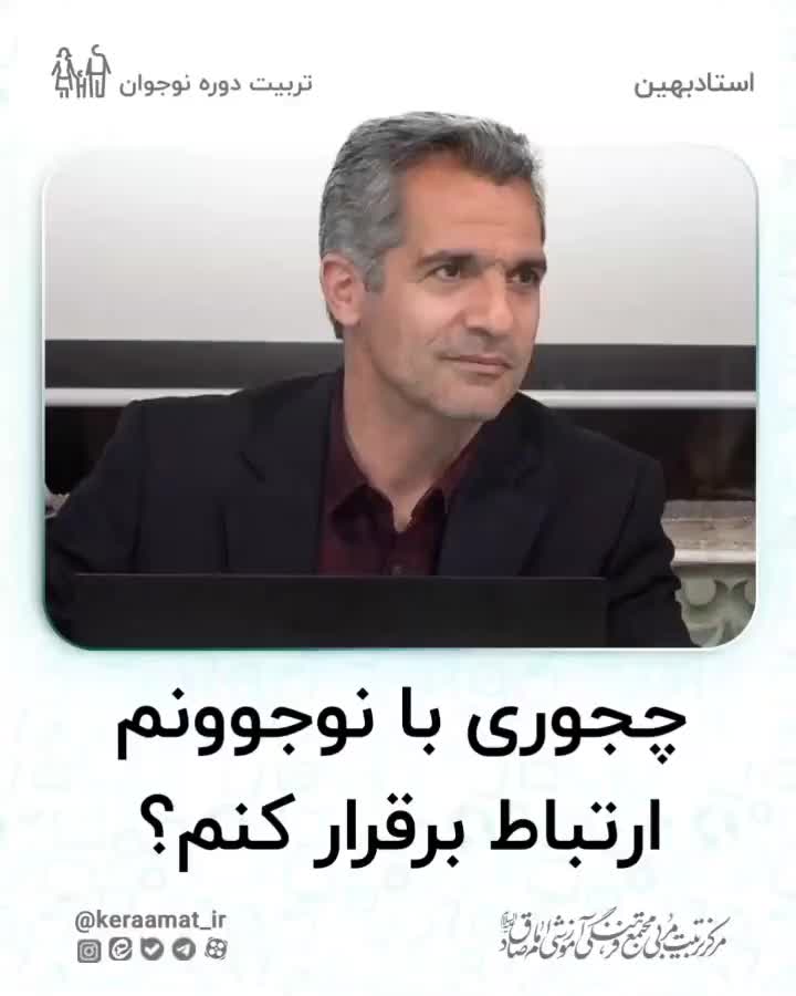 . .📍چیکار کنیم نوجوان دچار انحراف جنسی نشه؟ . اینکه بچهها سمت جست و جوی مسائل غیر اخلاقی در فضای مجازی میروند، تنها تحت تاثیر محیط و دوست نیست. بلکه بخشی از آن اقتضای فیزیولوژی بدن در آن سن است. یعنی در سن بلوغ یک نیاز جدید در بدن نوجوان در حال آشکار شدن است که باید مدیریت شود. برای مدیریت این سن لازم است تغذیه مناسب داشته باشد و غذاهای پرکالری مصرف نکند، پدر و مادر پوشش مناسب در برابر بچهها داشته باشند و ساعات تنهایی بچهها زیاد نباشد. باید بچه ها را کمک کرد که انرژی های مازاد بدنشان را تخلیه کنند. به خصوص در شرایط آموزش مجازی، حتما باید برنامه طراحی کرد و به صورت منظم همراه بچهها به کوه رفت. . . . ⭕️چقدر حواستون به مسایل جنسی و مزاج نوجوانتون هست؟ . . . 🔖آقای آل داوود. . 🔻ما در کرامت، برایتان از اندیشه های مختلف تربیتی می گوییم، چراکه نگاه نقادانه ی شما ارزشمند است.🔻 . . . . . . . #آل_داوود #تربیت_دینی #تربیت_توحیدی #تربیت_فرزند #تربیت_جنسی #مزاج #سبک_زندگی #جنسی #بلوغ #کرامت
