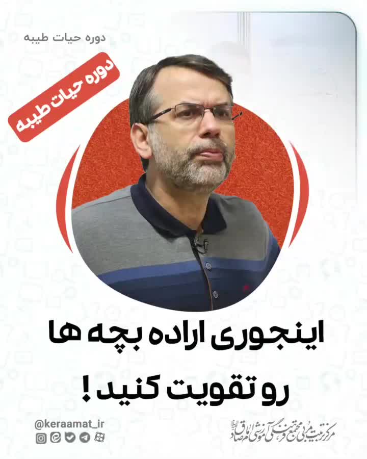 . 🔰 *اینجوری اراده بچهها رو تقویت کنید!* 🔻لازم است برای خود و خانوادههایمان بخشی از خود نگهداری را ایجاد کنیم. مثلاً تابلویی در خانه قرار دهیم و از بچهها بخواهیم ۲ ساعت به آن نگاه نکنند یا وقتی خوابشان میآید، از آنها بخواهیم چند دقیقه دیرتر بخوابند. 🔴 اگر فرزندان ما هر چه میخواهند، همان لحظه برایشان فراهم کردیم، باعث میشود عزم در آنها شکل نگیرد. در نتیجه در حیات طیبه دچار مشکل خواهیم شد. چون ایمان و عقلشان مشکل پیدا میکند. ⚡️خود نگهداری معمولا در سه چهار حوزه خوابیدن، دیدن و شنیدن است. ☑️ لازم است بچه ها یاد بگیرند به صورت خود ساخته، از یکسری امور امتناع کنند و این مقدمهای برای توانمندی در حوزه عقل است. "استاد مجید اسماعیلی" *دوره حیات طیبه* ⚠️ ما در کرامت، برایتان از اندیشه های مختلف تربیتی می گوییم، چراکه نگاه نقادانه ی شما ارزشمند است. ⚠️ #استاد_اسماعیلی #تربیت_فرزند #انتخاب #تکلیف #محرم #عزاداری #کرامت #اراده #تقویت_اراده #حیات_طیبه