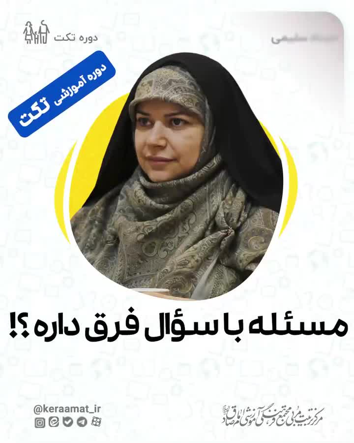 🔰 *مسئله با سؤال فرق داره؟!* 🔻بعضی ها فکر می کنند که همینقدر که من دغدغه دارم ، نارضایتی دارم ، یعنی مسئله ام را می شناسم، خیر ♨️ وقتی ما می گوییم مسئله تعریف شده که ما خواسته مطلوب را می شناسیم، می خواهیم کجا باشیم، وضعیت موجودمان را می دانیم، و این فاصله را که یک مانعی نمی گذارد به آن برسیم، مسئله است. موانعی که می بینیم ممکن است باز بین افراد متفاوت باشد و بعد اینها چطور اعتبارسنجی می شود؟ ⚡️ بر اساس اینکه به سمتی که داده جمع کنیم، می رویم و بر اساس واقعیت ها صحبت میکنیم و بعد می توانیم به همه اینها شکل نهایی بدهیم. ☑️ و بدین صورت هر پرسشی که مطرح شده و هر سؤالی که قابل مطرح شدن بود، برایش یک جواب قابل قبولی پیدا کردیم و بدین صورت مسئله را شکل دادیم. "خانم سلیمی" *دوره آموزش تفکر محور (توانمندسازی کنشگران تربیتی) * ⚠️ ما در کرامت، برایتان از اندیشه های مختلف تربیتی می گوییم، چراکه نگاه نقادانه ی شما ارزشمند است. ⚠️ #استاد_سلیمی #تربیت_فرزند #نارضایتی #صحبت #جواب #کرامت #پرسش #اعتبار_سنجی #دغدغه #سؤال #مسئله ✅ @keraamat_ir