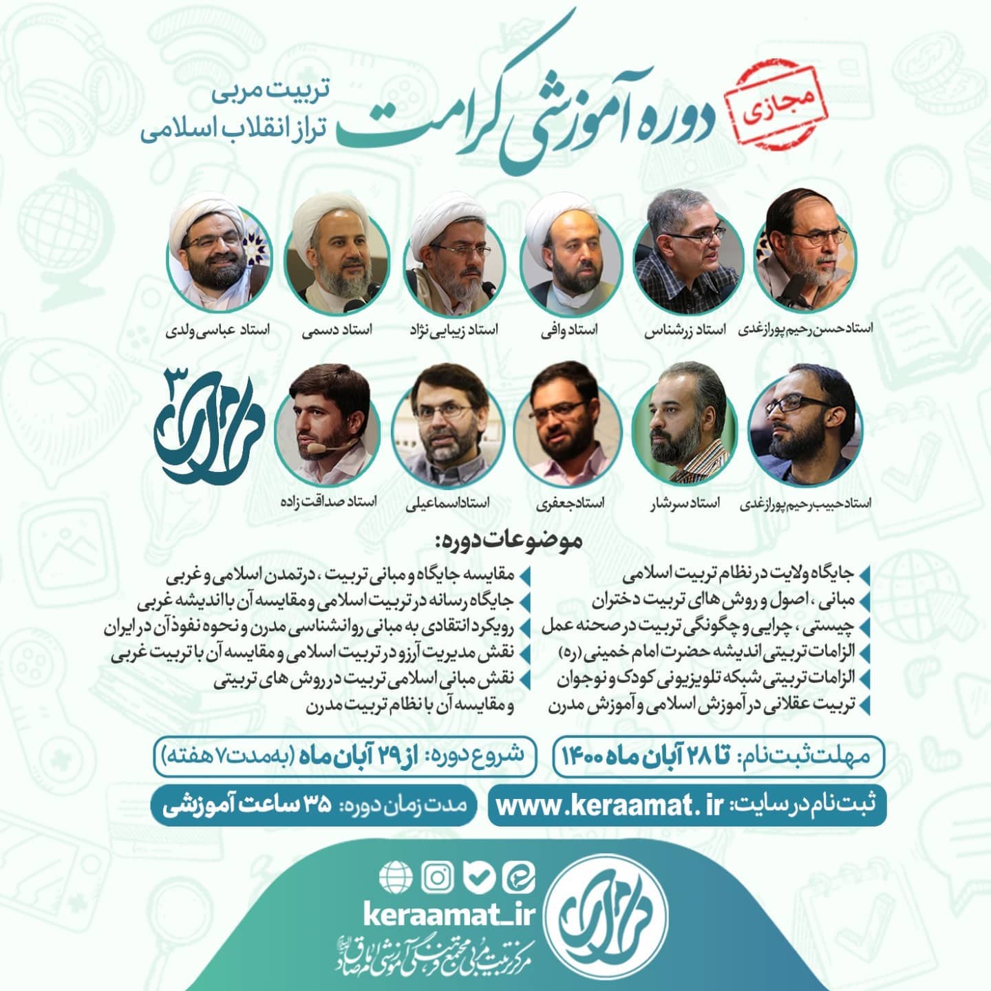💡 *دوره آموزشی مجازی کرامت۳* 🔸 ۳۵ ساعت آموزشی طی ۷ هفته به صورت آفلاین ⛔️ شروع دوره: ۲۹ آبان 📌همراه با اعطای گواهی از سوی مرکز تربیت مربی مجتمع امام صادق (ع) 🌐 اطلاعات بیشتر و ثبت نام در www.keraamat.ir ✅ @keraamat_ir . . . . . . #کرامت #آموزش #آموزشی #تربیت_کودک #رسانه #تصویر #مادر #مربی #پدر #بچه
