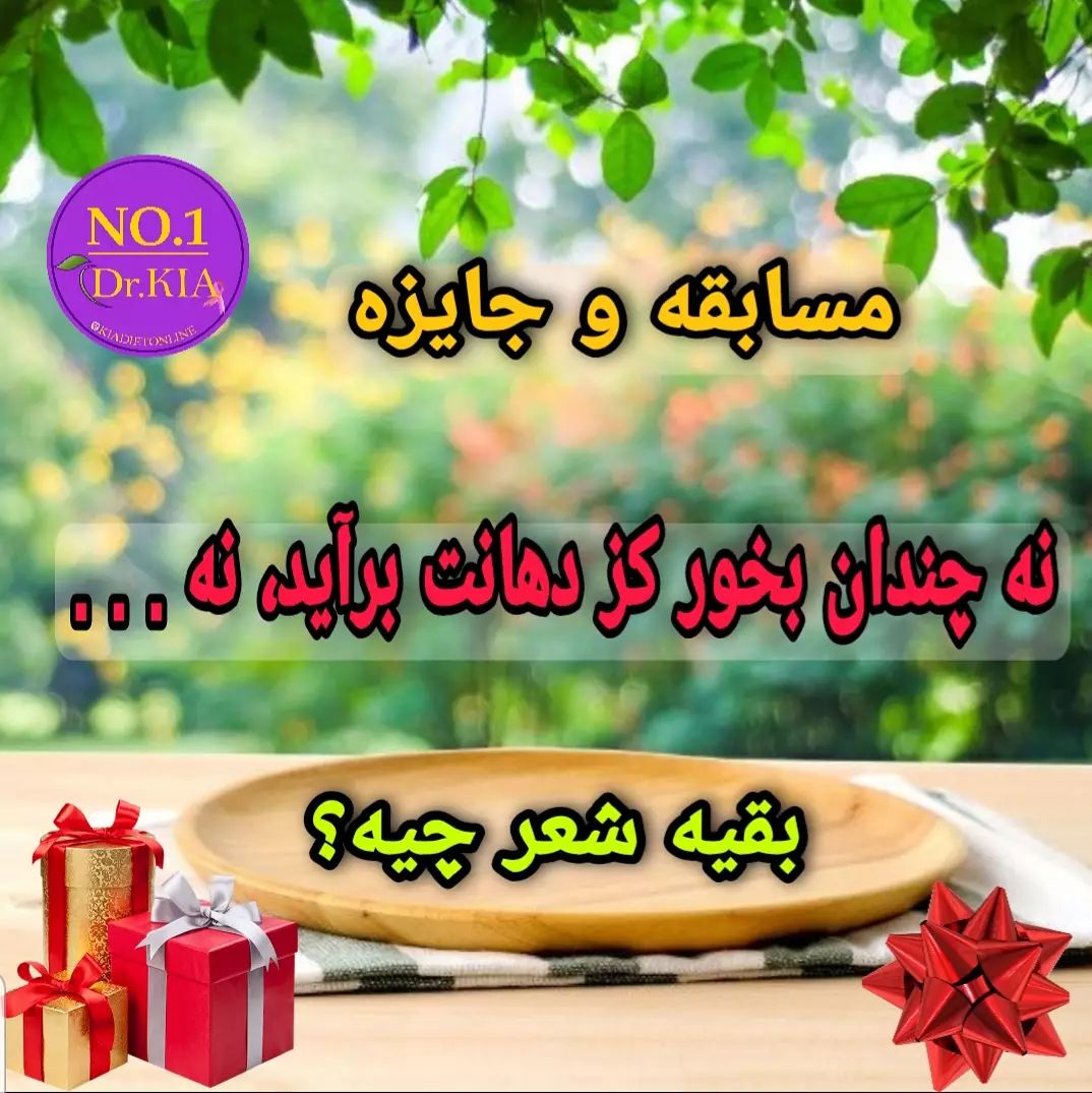 ♾ 📣📣بقیه این شعر چیه ⁉️ امشب به مناسبت روز شعر و ادب فارسی، مسابقه و قرعه کشی و جایزه داریم . دریافت رایگان برنامه غذایی یا استفاده از خدمات کلنیک آفرنگ 🎁🎁🎀🎀 🔴شرایط شرکت دادن در قرعه کشی و جایزه : 🅾️بقیه شعر رو بنویسید ، ۲ نفر از دوستان تون تگ کنید ، لایک و سیو هم داشته باشین . @kiadietonline ➖➖➖➖➖➖➖➖➖➖➖➖➖➖ 📞 02188563201 📱 09021888035 تهران، شهرک غرب📍 ➖➖➖➖➖➖➖➖➖➖➖➖➖➖➖ 🎀خدمات ما : ارائه مشاوره حضوری وآنلاین برای اضافه وزن،لاغری ، بیماریها(قلبی، دیابت، کلیوی،کید چرب، فشارخون، کنسر، آلزایمر، یبوست، گیاهخواری و..) ، چاقی کودکان،رشدقدی، کم وزنی ، بد غذایی 🔻Foreign patients are admitted ➖➖➖➖➖➖➖➖➖➖➖➖➖➖➖ #افزایش_قد #چاقی_کودکان #لاغری_کودک#افزایش_وزن #Nutritionist #مشاوره_آنلاین#ZavallıErdoğan#مشاور_تغذیه_کودکان #لاغری #قدکوتاه #مسابقه #چاقی #رژیم #کاهش_وزن #جایزه #روزشعروادب_فارسى