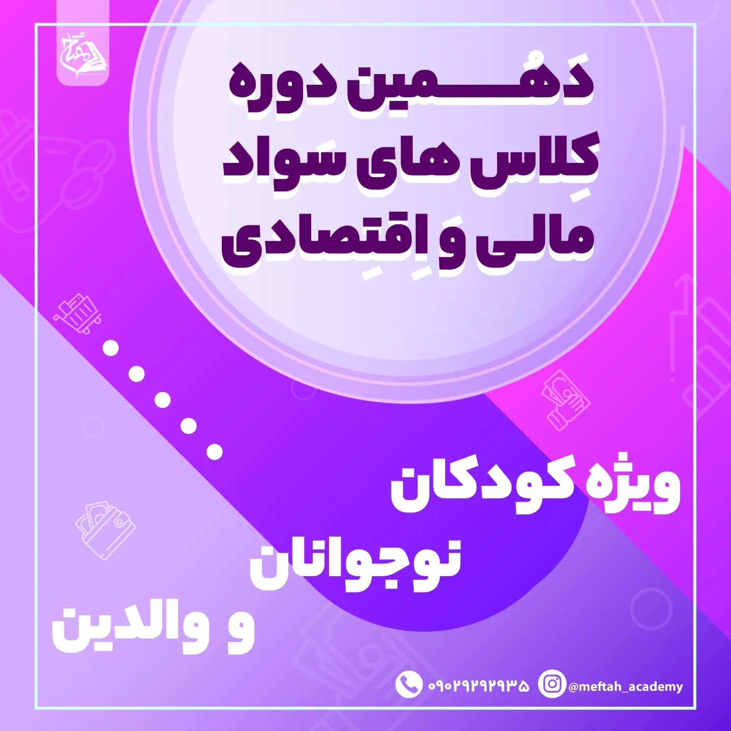 توجه توجهههه🤩🤩 . ثبت نام دهمین دوره مقدماتی کلاسهای سواد مالی و اقتصادی مفتاح آغاز شد. . ۴ کلاس برای ۴ رده سنی! برای رشد اقتصادی کودکان و نوجوانان و والدین🌸 . ویژه رده های سنی ۶تا۹ سال ، ۹تا۱۲ سال ، ۱۲ تا ۱۵ سال و والدین ✔ . ✔هر کلاس ۵ جلسه یک ساعتی ✔به صورت انلاین در فضای اسکای روم ✔مبلغ سرمایه گذاری: هر کلاس ۲۴۰ هزار تومان ✔ ثبت نام در دو کلاس یا بیشتر ۲۰ درصد تخفیف . با شرکت در این کلاسها به یکی از مهمترین مهارتهای زندگی یعنی مهارت اقتصادی دست خواهید یافت😍 . سرفصل کلاسها را در استوری ها بارگزاری میکنیم😍. . به دیگران هم اطلاع بدید تا اونا هم رشد کنند❤ 👈برای ثبت نام به دایرکت یا واتساپ شماره زیر پیام بدید. ۰۹۰ ۲۹ ۲۹ ۲۹ ۳۵ ◀️مفتاح؛ موسسه فرهنگی تربیت اقتصاد حکیم @meftah_academy #کلاس#کلاس_انلاین#تربیت_اقتصادی#موسسه_فرهنگی_تربیت_اقتصاد_حکیم #مفتاح#سواد_مالی_کودکان#سواد_مالی_والدین#سواد_مالی_نوحوانان#کلاس_اموزشی#