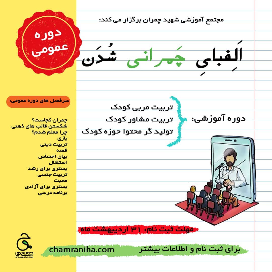 خبر خبر خبر مهممممم❗❗❗❗❗ چیزی تا برگزاری دوره ی الفبای چمرانی شدن نمونده!!!! شما مادر هستین؟ معلم هستین؟ یا کلا به حوزه ی کودک علاقه مندین؟🤗 پس این دوره مخصوووص خود شماست❗🤩 الفبای چمرانی شدن یه دوره ی آموزشی_تربیتی هست که شامل سه مرحله ی عمومی، تخصصی و کارورزیه😇 این دوره به شما کمک میکنه یه مربی دلسوز و توانمند، یه تولید کننده محتوای حرفه ای یا یک راهنما و پشتیبان خوب بشید🤔 تازه ۲ هفته آزمایشی هم داره که میتونید شرکت کنید تا هم با دوره بیشتر آشنا بشید و هم ما بتونیم شمارو ارزیابی کنیم😊 🌱مهلت ثبت نام فقط تا ۳۱ اردیبهشت ماه ✅آغاز دوره: ۱ خرداد ماه ✔برای کسب اطلاعات بیشتر و ثبت نام به لینک در بیو سربزنید و یا دایرکت بدید😉 Chamraniha.com . ⭕راااستی همین الان این پست رو ذخیره کن و برای ۵ تا از مامان ها و معلم هایی که میشناسی و کسایی که دغدغه حوزه کودک دارن بفرست🤗 #دوره_تربیتی#دوره_تربیت_مربی #تربیت_مشاور#دوره_آموزشی #الفبای_چمرانی_شدن #چمرانی_ها#والدین_آگاه #مشاور#معلم#تولیدمحتوا