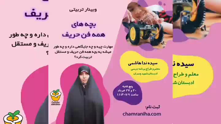 خبر خبر خبر❗❗❗❗ . ⁉️شما برای تابستون چه برنامه ای دارید؟ ⁉️دلتون میخواد یه بچه ی ماهر داشته باشید که بتونه از پس کارهای خودش بربیاد؟ ⁉️دوست دارید استقلال و خلاقیت و روحیه ی کارآفرینی رو تو وجودش تقویت کنید؟ . یه وبینار مهم داریم مخصوص مادرها و معلم های دغدغه مند که بابچه های بالای ۷ سال سروکار دارن🤔 حسابی قراره کنارهم درباره انواع مهارت و مهارت آموزی حرف بزنیم و برای تابستون و اوقات فراغت بچه ها کلی برنامه خوب بریزیم 🤗 . ⭕ وبینار بچه های همه فن حریف⭕ . 👤مدرس: سیده نداهاشمی . 🔷️زمان: این وبینار در دو جلسه، در ۳و ۱۰ تیر ماه برگزار میشه! . 🔶️ساعت ۹ تا ۱۱/۳۰ صبح . 🟥هزینه: ۷۵۰۰۰ تومان❌ ✅اگر تا پایان خرداد ثبت نام کنید، میتونید با ۱۷ ٪تخفیف یعنی فقط با ۶۲۰۰۰ تومان شرکت کنید🤗 . 🟣برای ثبت نام فقط کافیه دایرکت بدید یا به لینک در بیوی صفحه سربزنید😉 . ❗❗❗این پست رو ذخیره کنید و برای مامان ها و معلم ها بفرستید🤩 #مهارت #مهارت_آموزی#تربیت_فرزند #کودک_ماهر #ماماهر #وبینار_آموزشی #والدین_آگاه #والدگری #معلم_خلاق
