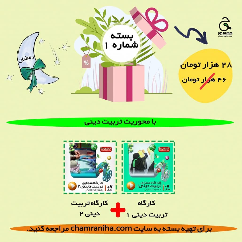 بسته ی ویژه ماه مبارک رمضان❗❗❗❗ . مگه میشه یه ماه قشنگ توراه باشه و راهچه تخفیف ویژه نداشته باشه؟🤗 . ۴۰٪ تخفیف باورنکردنی برای والدین و معلم ها 🤯😳🤩 ✅ بسته ها ی ماه مبارک رمضان 👇🏻 🟢بسته ی شماره ۱: ✔کارگاه تربیت دینی ۱+کارگاه تربیت دینی۲ 🟢بسته ی شماره ۲: ✔کارگاه قرآن+ کارگاه هدیه های آسمانی . بسته های ترکیبی ماه رمضان رو از دست ندید😇 . ⭕برای تهیه، فقط کافیه به لینک در بیوی صفحه یا سایت چمرانی ها سربزنید😉👇🏻 Chamraniha.com . #ماه_رمضان #بسته_تربیتی #بسته_آموزشی #تخفیف_ویژه #تخفیف_رمضان #تربیت_دینی #هدیه_های_آسمان #قرآن #تربیت_فرزند
