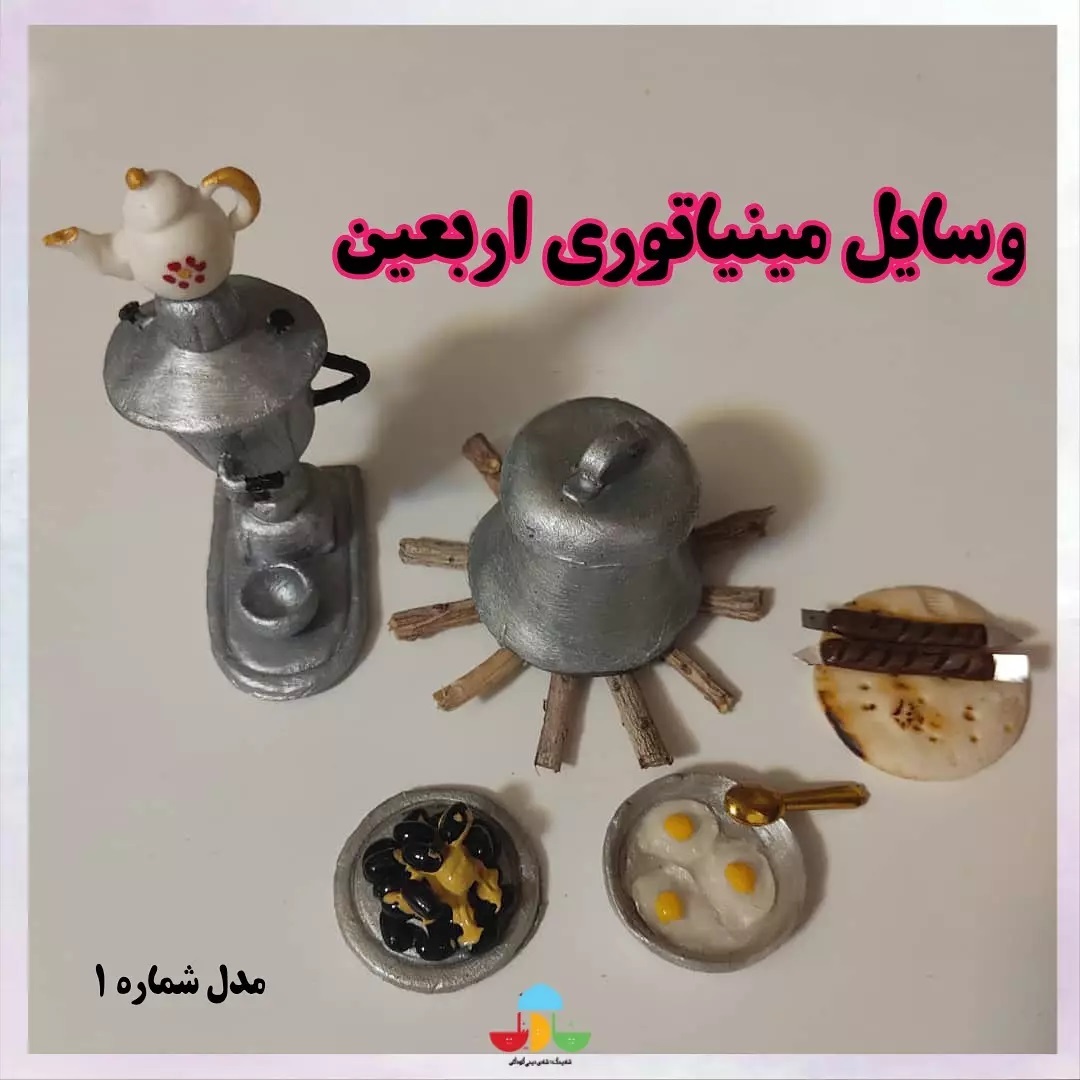 وسایل خاله بازی ریزه یا مینیاتوری برای صحنه سازی اربعین اربعین رفته ها میدونن ظرف خرما با ارده چه قد یادآور پیاده روی هست نون و چای عراقی... دیگ های غذا کنار موکب ها... سماور .... کتری و چای ذغالی ... همه و همه یادآور خاطرات اون روزهاست... این وسایل مینیاتوری رو جدا از محصولات رنگ آمیزی و بلوکه چوبی قرار دادیم تا هرکس با هر وسیله ی دیگه ای هم بتونه صحنه رو درست کنه و بعدا هم در خاله بازی هاش به کار بیاد . #اربعین #جامانده #پای_پیاده #هرکس_به_طریقی_به_تو_میپوندد #سلام_بر_حسین #مینیاتوری #خاله_بازی #خرما #ارده #چای_عراقی #سماور #دیگ_نذری #نذری_پرپرک #نان #نیمرو #شادینک