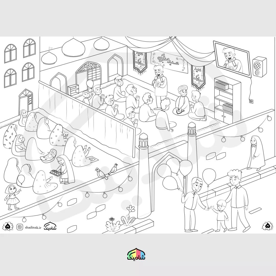 و اما فریم پنجم صحنه ی مسجد که خیلی تصویرگر دلسوزمون براش زحمت کشیدن که هم نمایی از خیابان باشه هم داخل مسجد اونم یه مسجد شاد ... #رنگ_آمیزی #رنگ_انگشتی #مدادرنگی #مسجد #غدیر #جشن #مولودی #مداحی