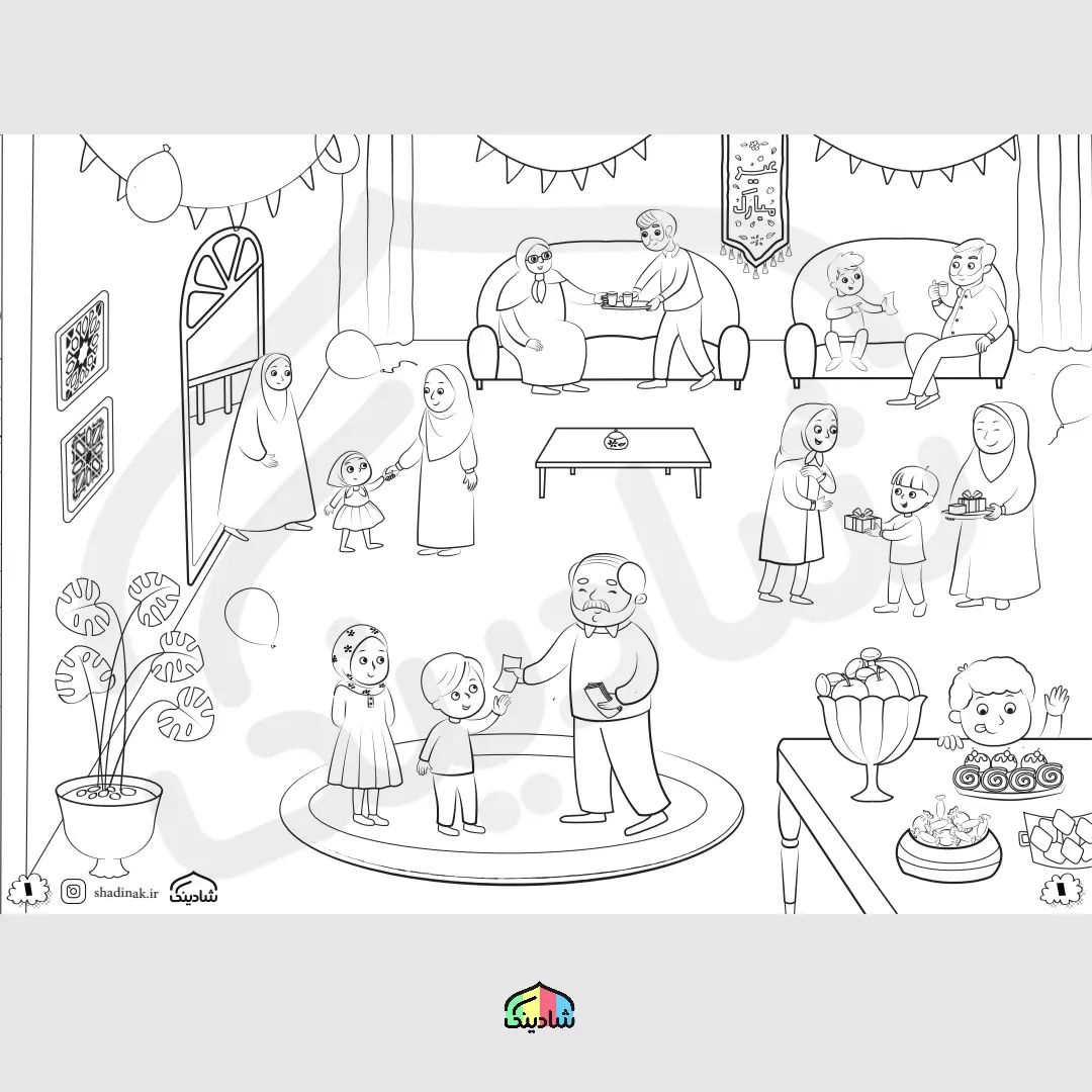 بسته ی #رنگ_آمیزی_متری ۵ قطعه ی کاغذی ۵۰در ۷۰ سانتی متر تصویرهای نقاشی شده روی این رول ، با موضوع آداب اسلامی در اعیاد مذهبی است مثل اطعام و عیدی دادن و دعاهای مخصوص و ... . میتوانید با نشان دادن هر تصویر این اعمال را به زبان کودکانه توضیح دهید . فریم اول از عید دیدنی خانه شروع میشود خانه آذین بسته ، شیرینی های خوشمزه ، عیدی دادن بزرگترها و کلی اتفاقات قشنگ که از آداب اعیاد اسلامی است . #عید_غدیر #عید #هدیه #رنگ_آمیزی #eid_adha #islamforkids