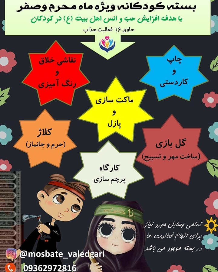 #بسته ی کودکانه ویژه ماه #محرم #مثبت والدگری: ✔در این بسته با هدف ایجاد حب و انس با اهل بیت (ع)، کودک🔸 ۱۶ فعالیت 🔸 جذاب برای تدارک برگزاری یک هئیت خانگی را تجربه میکند. ✔مثبت والدگری به جهت رفاه حال شما عزیزان در این روزهای کرونایی تمامی وسایل لازم برای انجام فعالیت ها را در این بسته جمع آوری کرده است. 📍جهت سفارش بسته: تماس با ۰۹۳۶۲۹۷۲۸۱۶ یا 📍دایرکت به https://instagram.com/mosbate_valedgari #مثبت_والدگری #محرم #بسته_کودکانه #کودک #کودکانه #بسته_آموزشی #محصولات_مذهبی #محصولات #محصولات_آموزشی #کلاژ #کاردستی #ماکت #نقاشی #شعر #ماز #چاپ #گل #گل_بازی