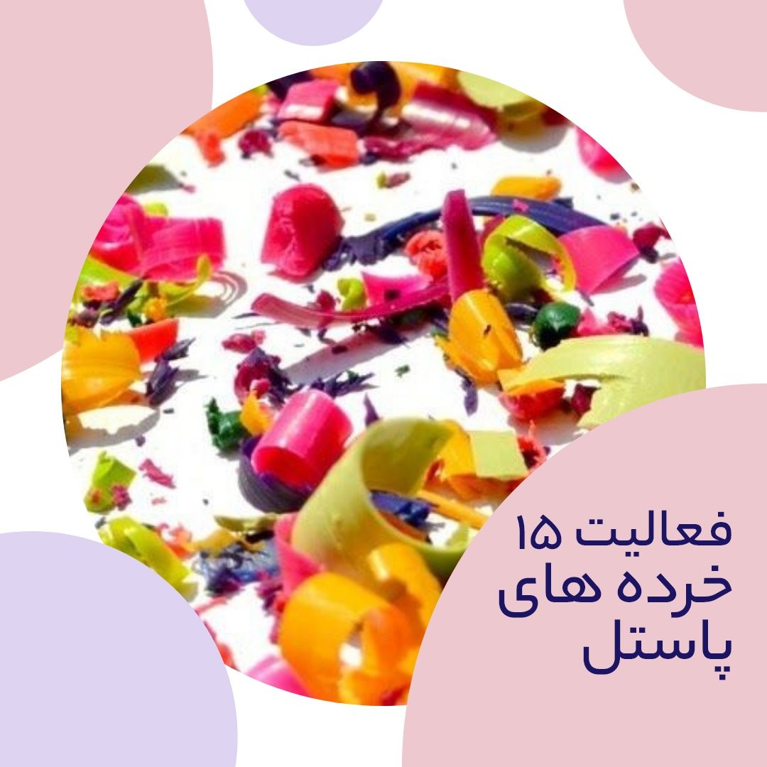 #پاستل های ریزشدهای که دیگر قابل استفاده نیستند، قابل استفاده کنید: پاستلهای ریز را رنده کنید. (پاستلهای ریز #رنگارنگ) حالا آنها را در ظرفی بریزید و در اختیار کودکان قرار دهید. (بهتر است کنار دست هر دو کودک یک ظرف باشد.) آنها را تشویق کنید تا با انگشت اشارهای که درون ظرف میبرد، بر روی کاغذ #نقاشی های زیبایی خلق کند.