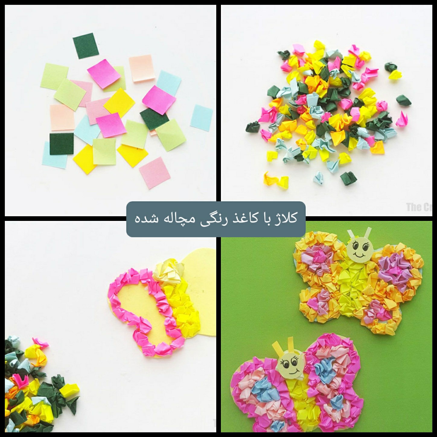 کلاژ با کاغذ رنگی مچاله شده #مهارت_دست_ورزی #تقویت_مهارت_حرکتی_ظریف کاغذ های رنگی رو در ابعاد کوچک خرد میکنیم و در اختیار کودک قرار میدیم تا مچاله شون کنه. اگر کاغذ رنگی نداشتیم، میتونیم کاغذ سفید رو رنگ کنیم. هم میتونیم یک طرح رو بکشیم و از کودک بخوایم با کاغذ رنگی ها طرح رو پر کنه و هم میتونیم کودک رو آزاد بذاریم با خلاقیت خودش یک کلاژ درست کنه. 🎉🎉🎉
