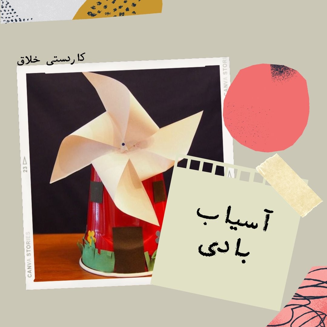 وسایل مورد نیاز: لیوان یک بار مصرف یا لوله دستمال، کاغذ مربع شکل (۱۵ * ۱۵)، سوزن ته گرد، قیچی. بیا بسازیم: ۱. یک فرفره درست کنید: قطرهای مربع را تا نرسیده به مرکز مربع با قیچی میبریم و به وسیلهی يك سوزن، زاویههای برش خورده را یکی در میان به مرکز مربع وصل میکنیم. (اسلاید دوم) ۲. فرفره را با همان سوزن به لیوان بزنید. ۳. روی لیوان یا لوله دستمال با ماژیک در و پنجره های کوچک بکشید. #کاردستی #کاردستی_خلاق #آسیاب_بادی