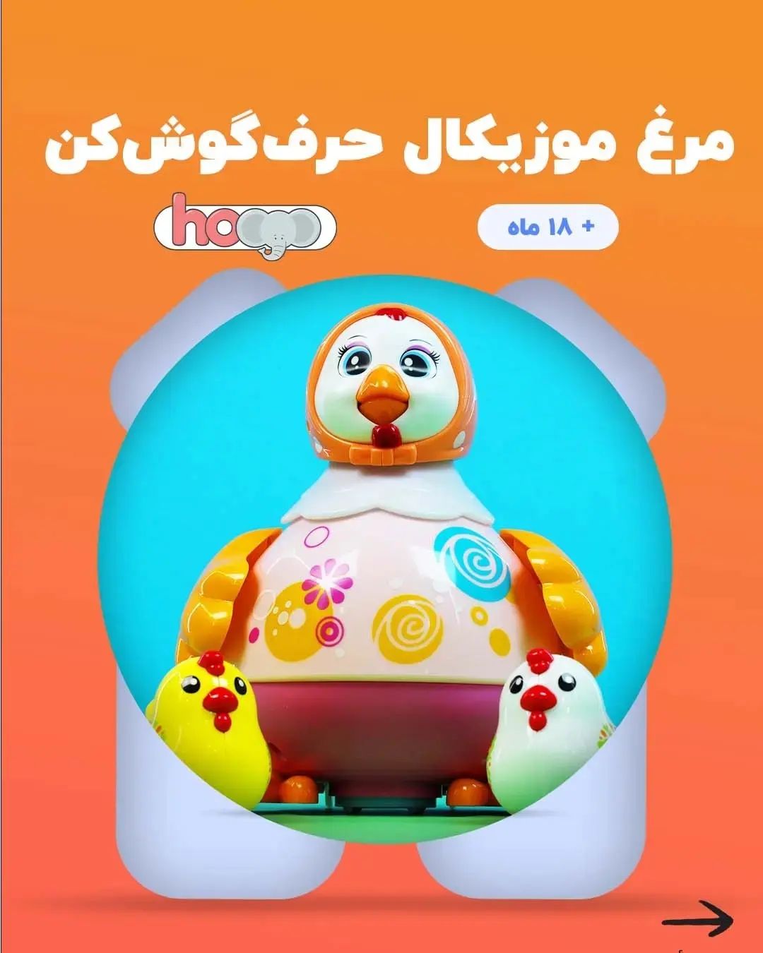 این خانم مرغه حرفتون رو گوش میده، 😍 به کمک جوجه کوچولوهای کنار این خانم میتونین سوت بزنین تا خانم مرغه بشنوه و هرجا هست بیاد پیشتون. کلی هم آواز و آهنگ بلده که براتون بخونه. ___________________________ تا حالا اسباب بازی حرف گوش کن دیده بودین ؟ ___________________________ #اسباب_بازی #اسباببازی_دخترانه #اسباببازی_پسرانه