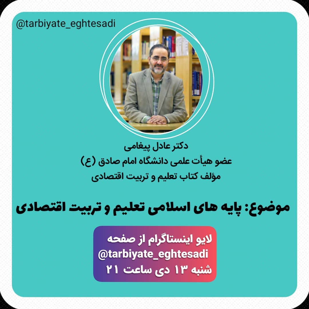 . 🔹️به نام خدا🔹️. . 🔸️ اگر سؤالی در این زمینه دارید ، زیر این پست ، کامنت کنید ، تا جناب آقای دکتر پیغامی ، پیرامونش صحبت کنند. . ~~~~~~~~~~~~~~~~~~~~~~~~~. . #دکتر_عادل_پیغامی. #تعلیم_و_تربیت_اقتصادی. #تربیت_کودک#تربیت_فرزند. #سواد_مالی#فرزند_پروری. #لایو_اینستاگرام. #تعلیم_و_تربیت_اسلامی#اسلام#اقتصاد. #education. #economic. #economic_education. #live_instagram. #eslam. .