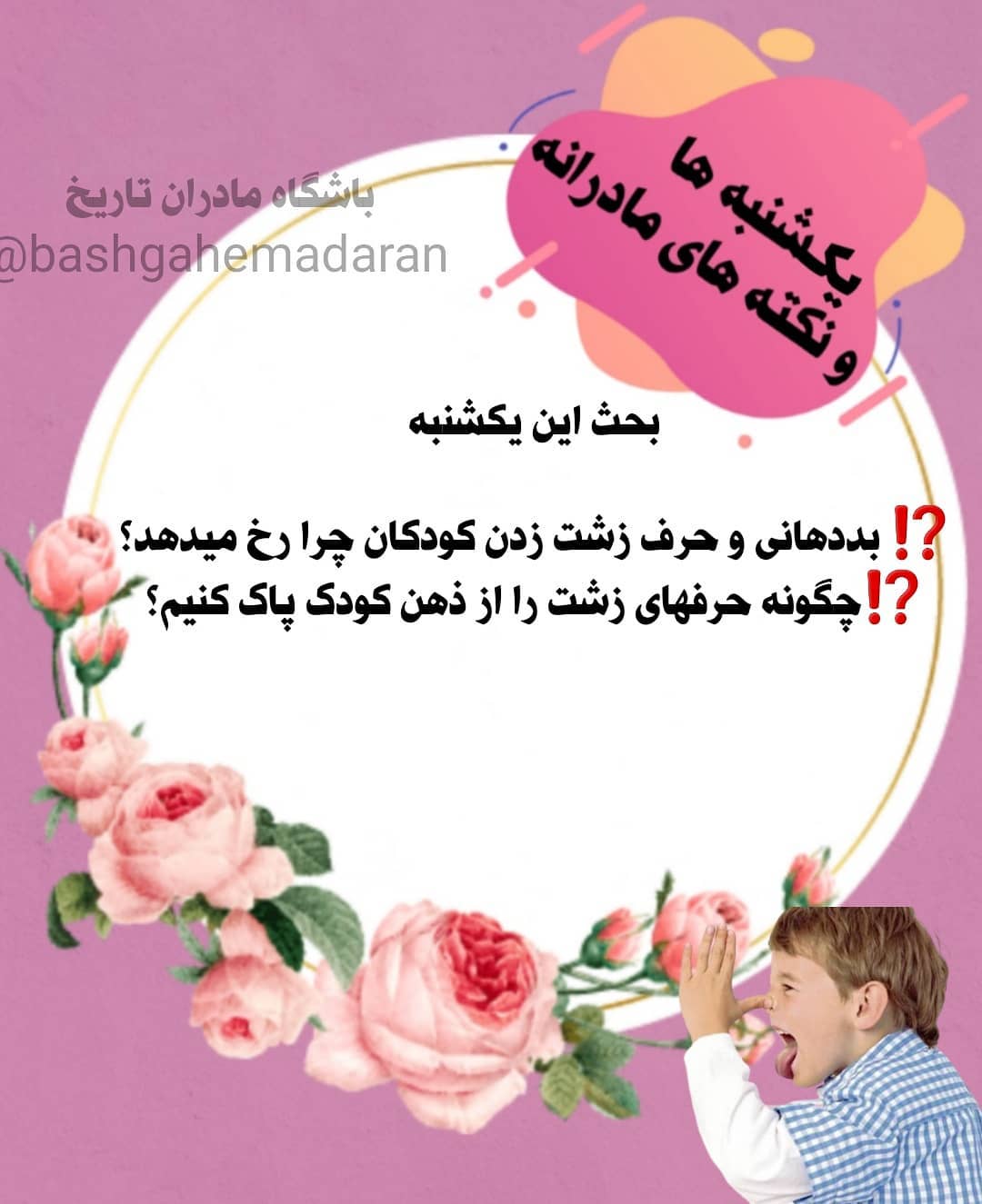 بسم الله.. #خلاصه_نکات_بحث #حرف_بد حتما شما هم با حرف بد و زشت زدن بچه ها مواجه شدید؛ از کجا یاد می گیرن؟ گاهی تلویزیون، گاهی تو پارک و بیرون، گاهی حتی ممکنه از خودمون شنیده باشن هر چند به شوخی گفته باشیم...بچه ها یادگیری کلمات جدید و نادر را دوست دارند به خصوص اگر توجه ها را جلب کند. مواجه ما با این رفتار چطور باید باشه؟! ✅شیوه ای که آقای دهنوی برای برخورد با حرف بد گفتن بچه ها دارن؛ تا بچه کلمه بد رو گفت، شما یک کلمه ثابت رو تکرار کنید، مثلا هر وقت گفت بی ادب شما سریع بگید شمشیر تا کم کم جایگزین بشه و از سرش بیفته ✅در سن های پایین تر که بچه ها هنوز هیچ درکی از حرف بد ندارند تغافل و نادیده گرفتن بهترین برخورد هست. ✅می توان در قالب قصه برای بچه ها بیان کرد که گفتن حرف بد باعث بد بو شدن دهان می شود. ✅تا جایی که ممکن هست بچه را از محیط های آسیب زا حفظ کنیم و خودمان هم حتی به شوخی از کلمات زشت استفاده نکنیم. ✅گاهی بچه ها خصوصا حدود سن ۵سال علاقه به گفتن کلمات خاص دارند ، میتوان آنها را با کلمات خنده دار دیگر جایگزین کرد. ✅آموزش کنترل هیجانات و خشم، به بچه ها نقش مهمی در استفاده نکردن از کلمات نامناسب دارد. #شنبه_های_باشگاه #بچه_مودب #حرف_زشت #کنترل_هیجانات #شناخت_احساسات #باشگاه_مادران_تاریخ