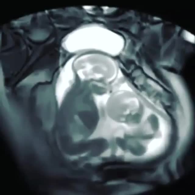 👶👶 نمای منحصر به فرد MRI از دوقلوهای همسان که تقریبا در هفته بیست حاملگی قرار دارن و در حال لگد زدن به شکم مادر هستن😊