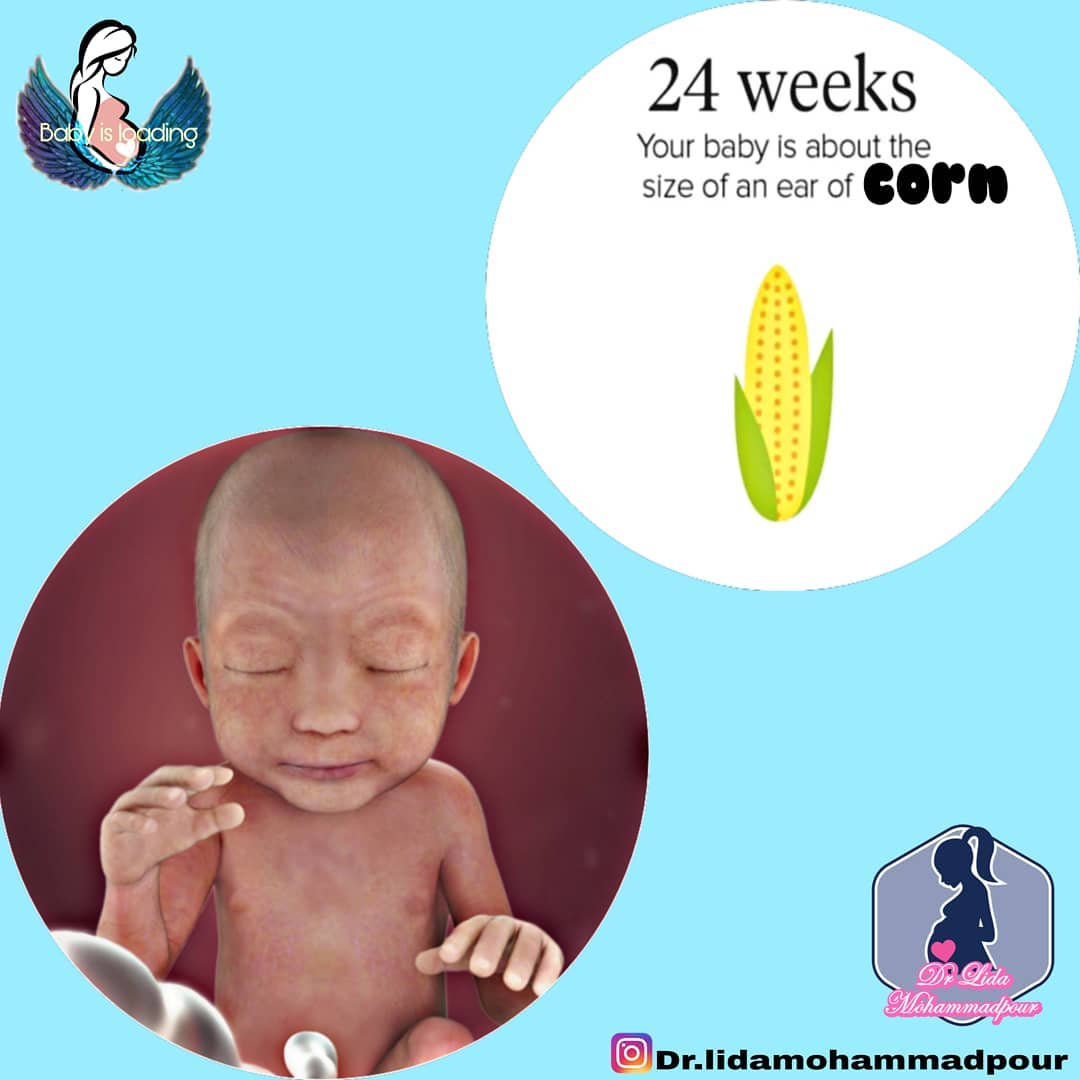 . #هفته_بیست_و_چهارم_بارداری جنین اندازه ذرت بزرگ😍 در هفتۀ ۲۴ بارداری، جنین شما در حالت جمعشده، تقریباً به اندازۀ یک ذرت بزرگ است که از سر تا پاشنۀ پا حدود ۳۰ سانتیمترطول دارد و وزنی حدود ۶۰۰ گرم خواهد داشت.این هفته رگهای خونی که در ریهها تشکیل میشود، امکان تبادل اکسیژن و دیاکسیدکربن در ریۀ کودک را فراهم میکند. کیسه های تنفسی در نوک کوچکترین شاخه های ریه های کودک شما در حال رشد و تکثیر هستند و به محض تولد کودک سطح بیشتری برای تبادل اکسیژن و دی اکسید کربن اضافه می کنند. مغز کودک شما به سرعت در حال رشد است. همین امر در مورد ریه ها و سلول های تولید کننده سورفاکتانت در ریه ها صادق است. سورفکتانت ماده ای است که از چربی تشکیل شده است و به تثبیت کیسه های هوای ریز در ریه ها که برای تنفس سالم ضروری هستند ، کمک می کند. اثر انگشت و رد پای آنها نیز به زودی کامل خواهد شد. در حال حاضر شکم شما انداره ی یک توپ فوتبال است.با تغییر شکل و مرکز تعادل جدید ، علاوه بر فشار اضافی که رحم در حال رشد روی بدن شما وارد می کند ، کمر درد نیز در دوران بارداری از علایم شایع است. اگر کمر درد شما شدید است به پزشک خود مراجعه کنید. همچنین می توانید برای کاهش تعداد کمر درد وقتی چیزی را بلند می کنید زانوها را خم کنید و کمرتان را صاف نگه دارید و از برداشتن اجسام خیلی سنگین پرهیز کنید. صاف بنشینید و در صورت احساس بهتر ، از بالش برای حمایت از کمرتان استفاده کنید. اگر پشت میز کار می کنید ، اطمینان حاصل کنید که سطح کار شما به اندازه کافی بلند است تا قوز نکنید. متأسفانه ، یبوست علامتی است که ممکن است در تمام طول بارداری شما را آزار دهد. حتماً در رژیم غذایی خود غذاهای غنی از فیبر بگنجانید ، مایعات زیادی بنوشید و در صورت تأیید پزشک ، ۳۰ دقیقه در روز ورزش کنید. این تغییرات ساده در سبک زندگی می تواند به رفع یبوست کمک کند.اگر یبوست شما شدید است ، با پزشک خود صحبت کنید. با پیشرفت حاملگی، پوست سینه ها و شکم شما کشیده می شود و ممکن است شاهد ایجاد خطوط ضعیف روی شکم یا سینه های خود باشید.همچنین ممکن است پوست شما دچار خارش شود. یک مرطوب کننده ملایم می تواند به خارش کمک کند. همچنین ممکن است چشم شما احساس خشکی و خارش کند،اشک مصنوعی می تواند به رفع برخی از ناراحتی های چشم کمک کند.در تمام موارد ابتدا با پزشک خود مشورت کنید تا مطمئن شوید مشکلی برای خود شما و جنین شما پیش نمی آید. آزمایش گلوکز برای غربالگری دیابت بارداری در این سن حاملگی تا ۲۸ هفتگی درخواست می شود.