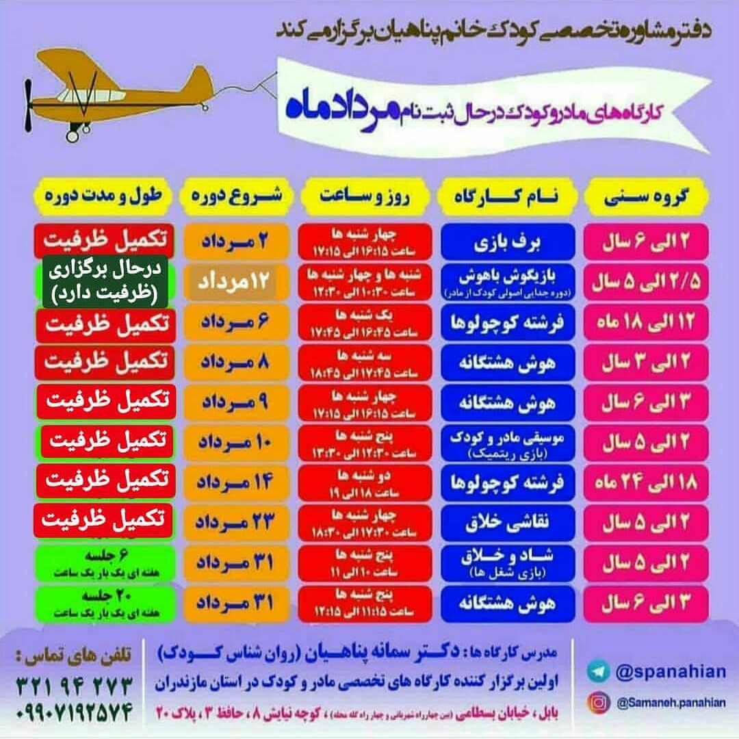 ✨کارگاه های دارای ظرفیت مرداد ماه 💠 شماره های تماس جهت گرفتن اطلاعات بیشتر و ثبت نام: ☎️09907192574 32194273 @spanahian #سمانه_پناهیان #روانشناس_کودک #اولین_برگزارکننده_کارگاههای_تخصصی_مادروکودک_در_استان_مازندران #دارنده_مجوز_رسمی_از_سازمان_نظام_روانشناسی_و_مشاوره_کشور