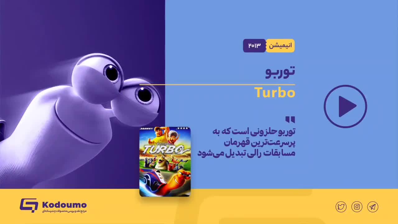 📍 این انیمیشن روایت زندگی یه حلزون تلاشگر به اسم توربوست که با یه اتفاق به پرسرعتترین حلزون دنیا تبدیل میشه. اون تصمیم میگیره از فرصتی که براش پیش اومده، نهایت استفاده رو بکنه و با استقامت به قهرمان مسابقات رالی تبدیل بشه. 📍این انیمیشن تو ژانر کمدیه و موضوع اون دربارهی حلزونیه که رؤیای بزرگی در سر داره. والدین میتونن از بچهها بخوان که آرزوهاشونو بگن حتی اگر دور باشن. به بچهها بگین که آیا مثل این حلزون برای رسیدن به آرزوشون حاضرن تلاش کنن و سختی بکشن؟ 📌به کدومو بیاید و ارزیابی خودتون رو بنویسین: yun.ir/9o5wu 🔗 کدومو؛ همپای خانوادهها @Kodoumo #کدومو #فیلم #والدین #تربیت #توربو