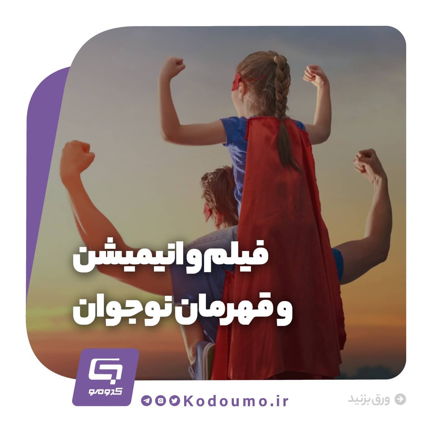 سلام مامان باباهای مهربون 📍یکی از مهم ترین چالشهای دوره نوجوانی، تلاش برای الگویابی است. این الگو یابی گاهی در قالب همذات پنداری با قهرمانهای آثار سینمایی و رسانهای بروز میکند. 📍 در این پست قصد داریم آثاری رو به شما معرفی کنیم که قهرمان اصلی آنها نوجوان است و ممکن است برای بسیاری از نوجوانان، الهام بخش باشد. پ.ن: بستههایی که ما هر چهارشنبه معرفی میکنیم به معنای تایید محتوای آثار نیست. هدف ما از ارائه این بستهها، دسته بندی موضوعی محصولات رسانهای بر اساس نیاز خانوادههای کدومویی است. پس قبل از دیدن این آثار حتما به سایت کدومو سر بزنید، ارزیابی آثار رو بخونید و هوشمندانه انتخاب کنید. #خانواده #کدومو #رسانه #مدیا #بسته_انیمیشن #آثار_مفید #نوجوان #هفته_نوجوان #سواد_رسانه_ای 🔗 کدومو؛ همپای خانوادهها 🔗 @kodoumo