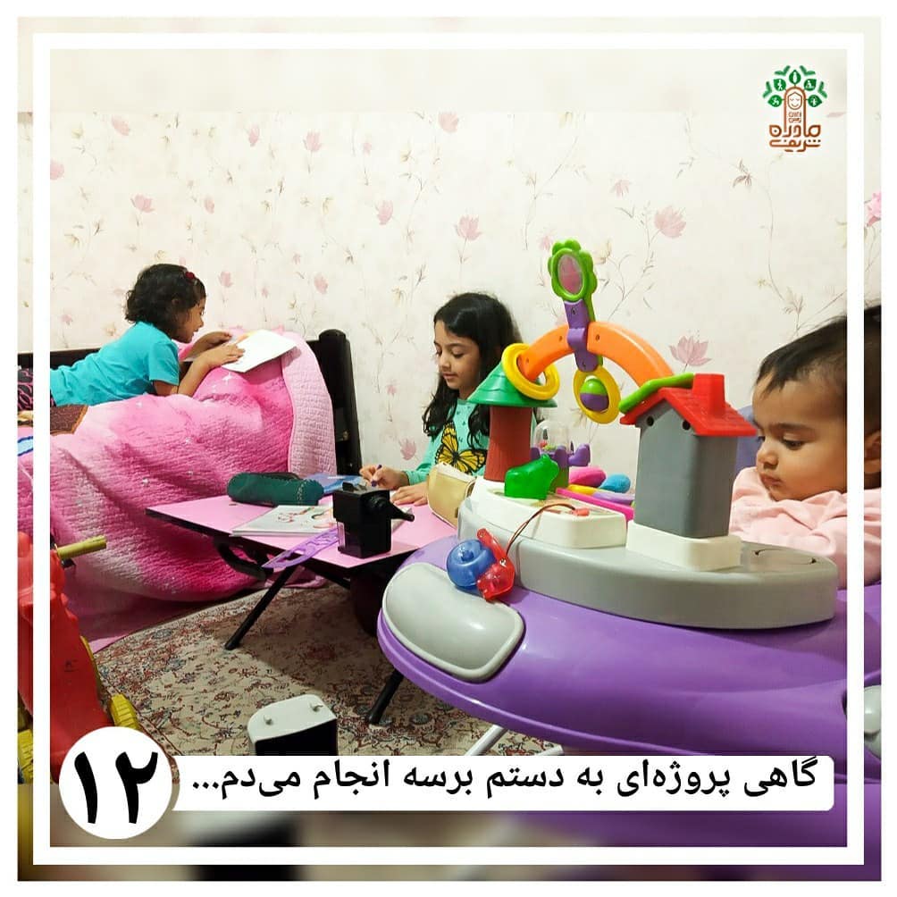 . #طهورا (مامان سه دختر ۶ساله، ۴ساله و ۵ ماهه) . مهر ۹۹ اومد! با توجه به غیرحضوری بودن مدارس، دخترم به کمک من نیاز داشت. از طرفی یه نوزاد و یه دختر کوچولوی دیگه هم داشتم، برای همین تصمیم گرفتم کارم رو فعلا کنار بذارم و شدم معلم دخترم.🤗 . الان هر روز از ۸ صبح تا ۱۲ در حالت آمادهباشم. مراسم بیدار کنون و صبحانه خورون😅 و بعد نشستن پای سیستم. هر چند دقیقه یک بار شرایط رو چک میکنم. اگه معلم صدا کنه و کاری داشته باشه باید انجام بدم. این وسطا به کارای خودم و دو تا دختر دیگهام میرسم و سرگرمشون میکنم تا کمتر مزاحم بچه مدرسهای بشن.😉 کلاس که تموم میشه، تکالیف شروع میشه❗️ مشق نوشتن کلاس اولی هم که معلومه😄 گاهی تا ۷-۸ شب طول میکشه. بعدشم شام حاضر میکنم تا همسرم بیان. . سعی میکنم پنجشنبهها و جمعهها کاملا به خودم استراحت بدم که برای بقیه هفته شارژ باشم و بتونم سه تا بچه رو مدیریت بکنم. . البته اگه میخواستم برم سر کار شاید میشد. ولی میدونستم که اونقدر بهم فشار میاد که یا بعد یه مدت خودم داغون میشم یا بچهها آسیب میبینن. (تو شرایط کرونا نمیشه بچه رو به مهد محلکار سپرد و مجبورن طعم تلخ دوری از مادر رو بچشن) . اشتغال رو هیچوقت برای درآمد و موقعیت اجتماعیش نمیخواستم، بلکه همیشه دوست داشتم با چیزی که یاد گرفتم به جامعه خدمت کنم یا اونو به دیگران یاد بدم. سعیم این بوده اندک وقت آزادم تلف نشه. بنابراین الآن اصلا ناراحت نیستم.☺️ . از فراغتهای کوچیک تو خونه یا ماشین استفاده میکنم کتاب میخونم. دو سالی هست با همسرم یک سایت آموزش مباحث کارآفرینی راه انداختیم، ولی به خاطر مشغله زیادم نتونستم بهش برسم. حالا میخوام بشینم براش تولید محتوا کنم و راهش بندازم.👌🏻 گهگاهی اگر پروژهایی به پستم بخوره انجام میدم. موقع ظرف شستن یا اتو کشیدن و... فیلمهای مورد علاقهم رو میبینم. (مثلا ممکنه دیدن یه فیلم یه هفته طول بکشه😝) . در کنار مادری برای این فرشتهها،😍 کارای دیگهای هم هست که بهشون علاقه دارم و حس میکنم باید انجام بدم و نیاز به فراغت بیشتری هست. پس کمی صبر میکنم یه مقدار نینی از آب و گل دربیاد.😚 . اونموقع قصد دارم کارم رو بصورت فریلنسری (آزادکاری) پیش ببرم. به شدت دوست دارم که حفظ قرآنمو دوباره ادامه بدم. . برکت ویژه چند تا بچهای همینه که با هم سرگرمن و خوشحالی از اینکه بچههات با هم خوشحالن حتی تو شرایط کرونایی! برای بچه اول وقت گذاشتی و حالا داری نتیجهشو تو بچههای بعدی میبینی. . . #قسمت_دوازدهم #تجربیات_تخصصی #مادران_شریف_ایران_زمین