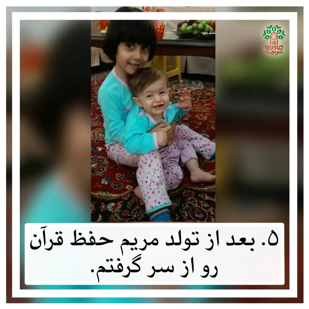 . #قسمت_پنجم #ک_موسوی (مامان #زهرا ۱۰ساله، #مریم ۶.۵ساله، #نرگس ۴ساله) پدرم همیشه دوست داشتن بچههاشون حافظ قرآن باشن. جایزه هم درنظر میگرفتن. این مهر و علاقهی پدرم و توصیهشون به حفظ قرآن، در روحیهی من و خواهرم هم میل و کشش ایجاد کرده بود.😍 خودم تو خونه و بدون هیچ کلاس و معلمی یه مقدار کمی حفظ کرده بودم. وقتی ازدواج کردم و همسرم علاقهی منو به حفظ دیدن، ازم خواست زیر نظر یه معلم، حفظ رو ادامه بدم و منو تو یه مؤسسه حفظ تلفنی ثبت نام کردن.😊 روال کار مؤسسه این طور بود که طی ۴ سال میشد قرآن رو حفظ کنیم. من ۲ سال با مؤسسه پیش رفتم و ۱۵ جزء حفظ کردم اما فشارش برام زیاد بود.❗️ احساس میکردم کیفیت حفظم ضعیفه. بعد از به دنیا اومدن زهرا دیگه خیلی کم میتونستم برای حفظ وقت بذارم و تصمیم گرفتم انصراف بدم. بعداً که برای کارشناسی ارشد وارد دانشگاه شدم، دیدم برای دانشجوها کلاس حفظ گذاشتند و من دوباره اونجا از اول شروع کردم. متوجه شدم چقدر بین کلاس حضوری و تماس تلفنی فرق هست.😁 کیفیت حفظم خیلی بالا رفت به حدی که وقتی چند ماه بینش وقفه افتاد و دوباره خواستم شروع کنم معلممون بیمقدمه ازم چند تا سوال پرسید و من همه رو بلد بودم.😉 با دانشگاه ۱۰ جزء پیش رفتم. متأسفانه دوباره یک وقفهی ۲ ساله برام ایجاد شد تا اینکه بعد از به دنیا اومدن مریم تصمیم گرفتم توی خونه کلاس برگزار کنم.👌🏻 به لطف خدا یه معلم خوب پیدا کردیم و با چند نفر از اطرافیان کلاس رو تشکیل دادیم. هفتهای یه صفحه حفظ میکردیم و خیلی آهسته پیش میرفتیم. مهم مأنوس بودن با قرآن بود. مریم هنوز ۲ ساله نشده بود که متوجه شدم دوباره باردارم.💛 اولش غصه خوردم... چون فکر میکردم مریم هنوز کوچیکه و احتیاج به مراقبت زیاد داره. اما بعدها که دیدم این دو خواهر چه همبازیهای خوبی برای همدیگه اند، متوجه شدم غصهی بیخودی خوردم.😃 خدای مهربون زمستان ۹۶ خانوادهی ما رو ۵ نفره کرد.😍 اینو بگم که قبل بارداری، خواب دیدم تو یه مجلس نشستم و حاج آقایی میگفت: "خانمها❗️چرا نام مادر امام زمان را زنده نمیکنید؟! چرا اسم دختراتون رو اسم مادر امام زمان (عج) نمیذارید؟!" این شد که تصمیم گرفتیم به پیام این خواب عمل کنیم. اسم دخترمون رو نرگس گذاشتیم.😍 نرگس که دنیا اومد احساس کردم رسیدگی به نوزاد سوم آسونتر از نوزاد اول و دومه. سر سومی، زهرا و مریم با هم مشغول بودن. در حالیکه وقتی مریم دنیا اومد، زهرا خیلی بهم میچسبید!🤷🏻♀️ به قدم مبارک نرگس خانوممون، همسرم شرکت خودشون رو تاسیس کردن.☺️ #تجربیات_تخصصی #مادران_شریف_ایران_زمین