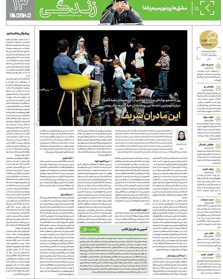 بخش سوم مصاحبه مادران شریف با روزنامه جام جم . خانم شکوری یکی از اعضای اصلی گروه مادران شریف است. پروانه شکوری متولد 72 و ورودی سال 91 رشته مهندسی شیمی در دانشگاه صنعتی شریف است اما بعد از یکی دو ترم میفهمد که مهندسی شیمی آن چیزی نیست که دوست داشته است؛ . . برای همین هم به شیمی تغییر رشته میدهد. در سال آخر دانشگاه با همسرش که او هم دانشجوی شریف بوده، ازدواج میکند:" به خاطر تغییر رشتهام، درسم چهارساله تمام نشد. من دو ترم آخر متاهل بودم و ترم آخر کارشناسیام، فرزند اولم را باردار بودم." . عباس و فاطمه، دو فرزند دو ساله و هفت ماهه خانم شکوری هستند. . . . 📌اولویت با فرزندانم است . خانم شکوری کارشناسی ارشد را به دلیل شرایط خاص رشتهاش و بچهداری فعلا ادامه نداده است اما در یکی دیگر از زمینههای مورد علاقهاش فعالیت میکند: . " حالا چند وقتی هست که به صورت غیرحضوری، در حوزه علمیه قم درس میخوانم؛ راستش قصدم این بود که اگر شیمی شریف قبول نشدم، به حوزه بروم. حالا که کارشناسیام تمام شده و به خاطر بچهها ترجیح دادم که ارشد نخوانم، حوزه که یکی از دیگر از مهمترین علائقم بود را شروع کردم و اتفاقا خیلی هم احساس خوشحالی و رضایت دارم." . . حیفتان نیامد که کارشناسی ارشد نخواندید؟: . . " وارد دانشگاه که شدم، هدفم ادامه تحصیل بود اما بعد از ازدواج و بچهدار شدنم، اولویتهایم تغییر کرد و نظرم عوض شد و فعلا به خاطر بچههایم آن را متوقف کردهام. . . شرایط کارشناسی ارشد رشته شیمی با دیگر رشتهها کمی متفاوت است و به دلیل گرایش مورد نظر من، باید هر روز صبح تا عصرم را در آزمایشگاه بگذرانم که این اتفاق با تربیت بچه ها توسط مادر سازگار نیست." . . موضعی که به نظر می آید متفاوت با هدف گروه مادران شریف باشد اما خانم شکوری می گوید:" خب این موضوع کاملا به شرایط و اهداف افراد بستگی دارد؛ من خانوادهام شهرستان بودند و اصلا هم دوست نداشتم که بچههایم را در سنین کم، به مهدکودک بسپارم. . . دلم میخواست که آنها را خودم بزرگ کنم و این شرایط من، با رشته دانشگاهیام همخوانی نداشت. . . این را هم بگویم که اعضای گروه ما هر کدام بسته به شرایط خودشان راه متفاوتی را برای کسب علم و فعالیت اجتماعی انتخاب کرده اند . . و ما تنها راه پیشرفت را تحصیلات دانشگاهی نمی دانیم. و در صفحه مادران شریف ایران زمین در فضای مجازی تلاش داریم همین راه های متفاوت را نشان بدهیم." . . ادامه در بخش نظرات😊 . منبع : روزنامه جام جم شنبه 16 آذر 1398 . . #مادران_شریف #پ_شکوری #شیمی91 #مصاحبه #روزنامه_جام_جم