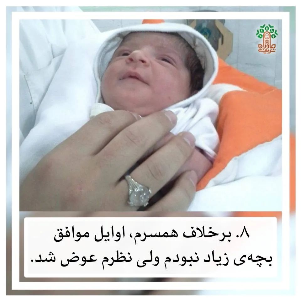 . موقع اذان صبح بود که محمد مهدی کوچولوی👼🏻 ما چشماشو👀 به این دنیا🌍🔆 باز کرد. . چقدر اون لحظه شیرین🍯 بود و من احساس خوشبختی میکردم😌 و احساس سبکی زیاد از به سلامت زمین گذاشتن این بار.🤲🏻 . خودم رو خیلی نزدیک به خدا حس میکردم... خلاصه اصلا اون لحظه قابل وصف نیست...😊 انشاءالله قسمت همهی خانوما بشه🤲🏻 وقتی اومد بغلم اول از همه بهش سلام کردم🥰 و مثل یه آدم بزرگ باهاش حرف زدم. . . خیلی نگذشته بود که احساس خوشبختی تبدیل به سردرگمی شد.😩 با هر گریه پسرم ترس😱 برم میداشت و هول میشدم. کتاب تربیتی📚 نخونده بودم و عذاب وجدان داشتم.🤷🏻♀️ . از همون موقع شروع کردم به مطالعه👌🏻 اول از کتاب های من دیگر ما شروع کردم.📚 یه مقداری هم با مطالعههای جسته و گریخته توی فضای مجازی و آشنایی با صفحات و کتابهای مختلف تربیتی مطالعهم قوت گرفت.💪🏻 . محمد مهدی هم روز به روز بزرگتر👦🏻میشد، باهم کتاب میخوندیم📓 بازی می کردیم⚽️ و زندگی شیرینتر🍭 میشد.😀 . تازه داشتم تو مادری راه میافتادم و محمد مهدی از نوزادی در میاومد و ۴ ماهه شده بود که چشم👀 چپم تار شد.😶 . اوایل وقتی به بقیه میگفتم همه چیز رو مه آلود🌫 میبینم، باوشون نمیشد...🤷🏻♀️ تا اینکه ۲۰ روز بعد... . داشتم تلویزیون📺 نگاه میکردم که اتفاقی مستندی در مورد یه بیماری پخش میشد...🤒 حس کردم چقدر علائمش شبیه علائمیه که من دارم.🤱🏻 . رفتم شیراز و اولین کاری که کردم بینایی سنجی بود. شمارهی چشم👀 چپم ۹ از ۱۰ شد یعنی من ۰.۹ بیناییم رو نداشتم.😱 . دستور بستری و مصرف کورتون و قطع شیردهی صادر شد.😪🏥 (آخرین باری که به پسرم شیر دادم رو یادم نمیره، انگار اونم فهمیده بود آخرین باره، بغض کرده بود و به زور شیر میخورد.😓😥) . بعد از آخرین شیر رفت خونهی بابابزرگش و منم راهی بیمارستان🏨 شدم. . روزهای سختی بود...🤒 من بستری، همسرم در سفر بین قم و شیراز و محمدمهدی هم آواره. و سختتر از همه تحمل سوالای ملاقاتیها که مثلا بنظرت محمدمهدی تو رو یادش میاد؟!😒 . بعد از اتمام دورهی بستری، رفتم پیش متخصص مغز و اعصاب و اولین سوالم این بود: + من اماس گرفتم؟ جواب مثبت بود😞 . . #ز_م_پ #قسمت_چهارم #تجربیات_تخصصی #مادران_شریف_ایران_زمین