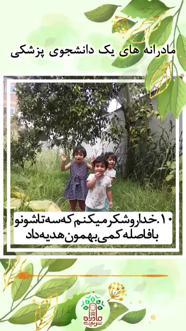 . قسمت پایانی . #بنتالهدی(مامان سه دختر) . وقتی خسته میشم با افراد قابل اعتماد مشورت و درددل میکنم. زیارت میرم، به اهلبیت متوسل میشم. برای امام عصر نامه مینویسم و حرفامو به ایشون میگم.😊 . سعی میکنم تغذیه سالم داشته باشم و گاهی اصلاح مزاج میکنم. . اول که بچهدار شدم واقعا زندگی خیلی سخت شده بود! اما هر چی میگذره بهتر میشه اوضاع.☺️ خدا رو شکر میکنم که سه تا شون رو با فاصله کمی بهمون هدیه داد. تو وقتم صرفه جویی میشه، چون من زمان میذارم که بازی کنم یا کتاب بخونم براشون و همزمان سه تا بچه استفاده میکنن.😉 خودشون با هم بازی میکنن، با سختیای طبیعی مواجه میشن و یاد میگیرن چطوری مسائل رو حل کنن. . اگر شرایط جسمیام اجازه میداد، حتما تا الان چهارمی رو هم آورده بودم. . دخترا یه تیم سه نفره قوی تشکیل دادن.😄 یه بار میخواستم سه تا شونو ببرم بیرون، یکیشون بدقلقی میکرد. گفتم اگه ادامه بدی نمیتونی با ما بیای! ادامه داد و منم گذاشتمش خونه(البته تنها نبود). از ساختمون خارج نشده بودیم که انقدر اون دو تا گریه کردن، مجبور شدم برگردم و به خاطر وساطت خواهرجونا، سومی رو هم ببرم!😉 . خوشحالم که حامی همدیگه هستن. امیدوارم در آینده هم همینطور باشن. همینطوری که الان برادرهای خودمو میبینم و لذت میبرم.😍 . موقعی که باردار شدم هنوز منبع درآمد مالی مشخصی نداشتیم. هر دو دانشجو بودیم. همون موقع کاری برای همسرم پیدا شد که حقوقش برای زندگی با یه جفت بچه و حتی گرفتن پرستار کافی بود. برکات مالی رو خیلی زیاد تجربه کردیم. ولی برکات معنوی عجیبی هم بعد از بچهها به زندگیمون سرازیر شد. . قبل از دنیا اومدن دوقلوها اهدافی داشتم و برای رسیدن بهشون تلاش میکردم، اما پیشرفت چشمگیری نداشتم.😒 . وقتی دوقلوها دنیا اومدن هم تا نه ماه فعالیتهام به حداقل رسیده بود. خیلی شاکی بودم که از اهدافم جا موندم. همون موقع پدرم با استادی درباره احوال من صحبت کردن. ایشون گفته بودن بهشون تذکر «جابر بودن خدا» رو بدید. خدا جبران میکنه. . اینو واقعا تو زندگیم دیدم. هدفی که دو سه سال تلاش کرده بودم و بهش نمیرسیدم، بعد از بچهها با سرعت عجیبی بهش نزدیک شدم.😍 . در حال حاضر پزشکی عمومی رو تموم کردم و باید به فکر گذراندن طرح باشم. . تمام تلاشم برای این هست که در مسیر یاری امام عصر و برای ظهورشون گامی بردارم، لبخند رضایتی بر لبانشون بیاد، انشاءالله❤️. اگر تخصص میخونم، یا بچهداری و همسرداری و خانهداری و هر کار دیگهای میکنم، همه رو به این امید انتخاب کردم، و از خودشون طلب یاری میکنم.😍 . .