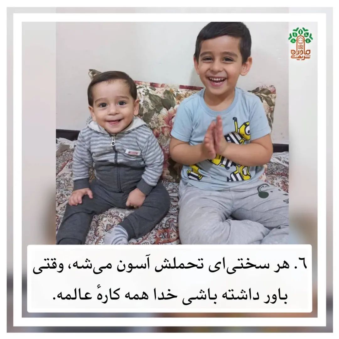 . #قسمت_نهم . #ز_فرقانی (مامان چهار فرزند ۱۲ساله، ۷.۵ساله، ۵ساله و ۳ساله) . هر چی تعداد بچهها بیشتر شد، انجام فعالیتهای دیگه برای من آسونتر شد. بعد از فرزند چهارم علاوه بر کارهای باشگاه طنز، کلاسهای شعر و نویسندگی رو هم شرکت کردم.😉 . مجردهای کلاس، از حجم تکالیف شکایت میکردن. ولی من فکر میکردم مغز آدم تو فشار، بهتر کار می کنه و ناخودآگاه بهتر میتونی مدیریت کنی و از این جهت مخالفتی نداشتم. البته برکت معنوی قدم بچهها هم بود.🧡 . اکثر کارهای مجازی رو با گوشیم در طول روز کنار بچهها انجام میدادم و اونا هم مشغول بازی بودن. کارهایی رو هم که نیاز به تمرکز داشت میذاشتم برای بعد از خواب بچهها، روزهای عادی حدود ۳ ساعت بعد از خواب شب بچهها و بعد از نماز صبح بیدار میموندم و در طول روز اگه فرصت میشد کمی میخوابیدم که همون کلی سرحالم میکرد.👌🏻 . گاهی هم به خاطر محفل چند شب رو کامل بیدار میموندم، که با سردرد و اذیت همراه بود ولی هزینهای بود که برای کارم که میدونستم ارزشمنده و بهش علاقه داشتم، میپرداختم.😇 روزهای محفل و جلسات کلاس همسرم یا برادرم که با ما زندگی میکرد، بچهها رو نگه میداشتن و یا همه باهم میاومدن تو محفل شرکت میکردن. گاهی هم که کسی نبود پرستار میگرفتم. . برای کارهای خونه، سر بچهی اول خیلی روی تمیزی و مرتب بودن خونه حساس بودم و خب از بیکاری هم بود که به جون خونه میافتادم،🙈 اما خداروشکر همسرم تو این زمینه حساسیتی نداشتن. حساسیت خودمم بعد بچهی دوم بهتر شد. ولی کمردرد داشتم و نمیتونستم کار سنگین بکنم. برای همین هم به وقت نیاز برای کارهای خونه از کسی کمک میگرفتم و میگیریم. . . حدود ۳ سال و نیم به همین منوال گذشت، تا چند ماه پیش... روحیهم شکننده و حساس شده بود.😓 بیدلیل گریه میکردم و فشار کار رو روی خودم و زندگیم حس میکردم و کارهامم خیلی خوب پیش نمیرفت. . تا اینکه متوجه بارداری شدم و البته این بار با سریهای قبلی از نظر روحی خیلی متفاوت بود. احتمالا پنجمین بچهم شاعر یا فیلسوف میشه!😅 . کار طنز مخصوصا طنز سیاسی اینطوریه که باید مرتب اخبار رو چک کنی و تلخی خبر رو بگیری و رسوب بدی درون خودت و بعد حرفت رو بریزی توی قالب طنز و تحویل مخاطب بدی. اما حالا چند وقته من حتی با شنیدن اخبار معمولی روز، به هم میریزم و دکتر هشدار داده که سلامت بچه با این استرسها ممکنه به خطر بیفته. . فعلا از محل کارم مرخصی گرفتم تا وضعیتم بهتر بشه.👌🏻 . . #تجربیات_تخصصی #مادران_شریف_ایران_زمین