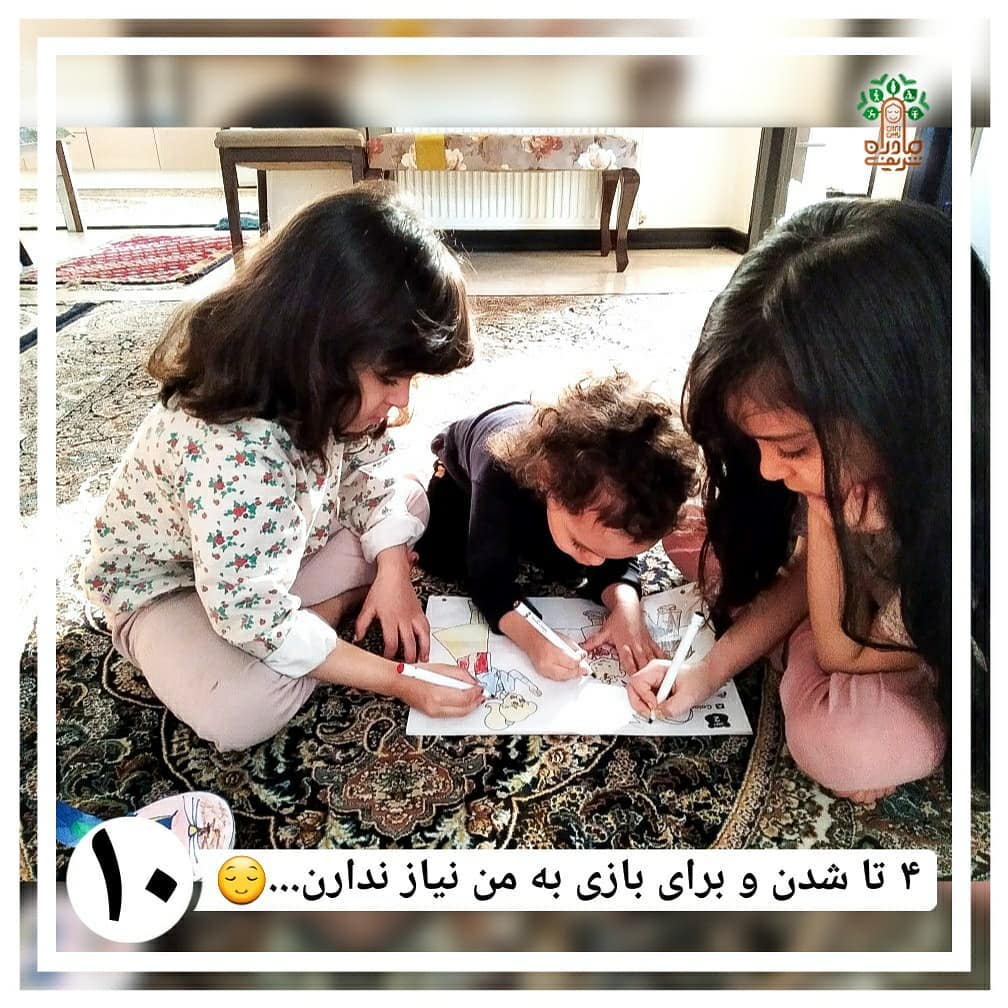 . #قسمت_دهم . #ز_فرقانی (مامان چهار فرزند ۱۲ساله، ۷.۵ساله، ۵ساله و ۳ساله) . موقع بچهی اولم، من یه همبازی و مراقب ۲۴ ساعته بودم. اما هرچی تعداد بچهها بیشتر شد، من تاثیر تعاملاتشون باهم رو توی تربیت و رفتارشون با دیگران بیشتر میدیدم. دخترام ترس، جمعگریزی، وابستگی و عدم استقلالی که بچهی اولم داشت رو ندارن. پسرم هم به مرور به برکت ارتباط با خواهرهاش خیلی اجتماعیتر شد.😇 . الان بچهها توی فضای امن خونه دارن اجتماعی بودن و چالشهاش رو تجربه میکنن. گرفتن حق خودشون، کوتاه اومدن و گذشت کردن و... رو توی خونه یاد میگیرن. . حالا که ۴ تا هستن برای همبازی شدن دیگه نیازی به من ندارن. البته منم به خاطر دل خودم همچنان گاهی باهاشون بازی میکنم. . دخترهام که فاصلههاشون حدود ۲ ساله، با هم خیلی روابط جذابی دارن. وقتی با هم بازی میکنن دلم میخواد فقط یه گوشه بشینم و نگاهشون کنم.😊 یکی دختر میشه یکی مادر و اون یکی هم مادربزرگ، صداشون رو عوض میکنن و باهم حرف میزنن.😅 . البته دعوا هم زیاد میکنن مثل همهی خواهر و برادرا. من سعی میکنم تا حد امکان توی دعواهاشون دخالت نکنم چون به نظرم همین دعواها هم بخشی از فرآیند رشد و اجتماعی شدنشونه.👌🏻 . برادرم و پسر یه برادر دیگهم، چند سالیه که برای درس و کارشون تهرانن و پیش ما زندگی میکنن و این برامون خیلی خوب بوده تو شهر غریب. اما بازم پسرم از نظر همبازی همجنس خودش، تک افتاد و سر همین هم کمی اذیت میشه و بارها بهم گفته باید برای منم یه داداش میآوردی که خدا رو شکر این دفعه خدا صداش رو شنید.😉 . فعلا واسه حل این مسئله، من و پدرش برای بازی با علی زمان اختصاصی میذاریم. خصوصا واسه بازی فکری. حالا هم که بزرگتر شده، قرار شد به پیشنهاد همسرم، گاهی بره پیش باباش و کارهای تایپی رو انجام بده و بابتش حقوق بگیره. خود علی هم از این پیشنهاد خیلی استقبال کرد و خوشحال شد.👌🏻 . قبلا گاهی من از سر دلسوزی بعضی کارای بچه ها رو انجام میدادم. هرچند بهتر بود خودشون یاد میگرفتن و مستقل میشدن. مثل جمع کردن اتاق و رخت خوابها! اما بعد شرایط بارداریم، خداروشکر خیلی مستقل شدن توی کاراشون و دختر بزرگم بهم خیلی کمک میکنه. . این روزا به خاطر بارداریم و شرایط کرونایی (که همه شدیدا هم درگیرش شدیم)، بچهها بیشتر از قبل تو خونه میمونن و بعضی روزا وقتشون رو با برنامهی کودک و بازیهای موبایل پر میکنن. البته بازیهاشون با هم سر جاشه و اگه تو این شرایط همدیگه رو نداشتن، اوضاع خیلی سختتر میشد. . . #تجربیات_تخصصی #مادران_شریف_ایران_زمین