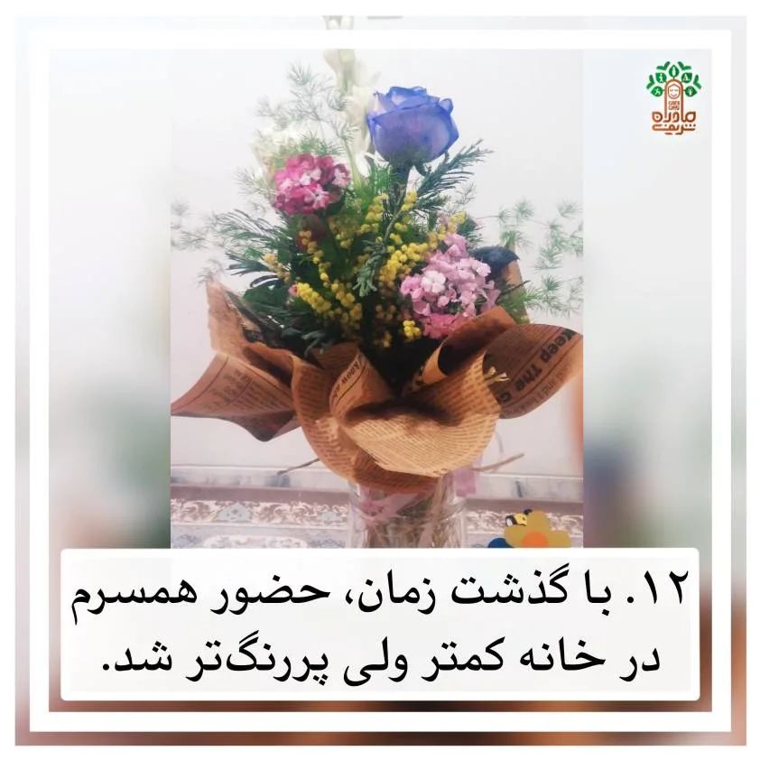 . #ف_اردکانی (مامان #محمد_احسان ۱۳، #محمد_حسین ۱۱/۵، #زهرا ۱۰، #زینب ۷/۵، #محمد_سعید ۳/۵ ساله) #قسمت_دوازدهم خداجونم میشه غر بزنم؟! بیزحمت به اون فرشته که سمت چپ گذاشتی بگو یه کوچولو استراحت کنه و ننویسه! شمام خواهشاً این دفعه رو ندید بگیر! آقامون! دلم میخواد غر بزنم! ناراحت نشیا! دلم پره😜بزنم؟! و اینجا بودکه با دادن چراغ سبزی از سوی آقای همسر، غرزدنها شروع میشد. با تولد هر فرزند علاوه بر برکات مادی و معنوی که شامل حالمون میشد، همسرم از نظر شغلی پیشرفت میکردن. (طلبه اند) تا اونجایی که حد کمکهای ظاهریشون (و نه مادی و معنوی)، از فرزند اول تا پنجم، از بینهایت به سمت صفر میل کرد!😂 البته به سمت صفر رفت ولی الحمدلله، گوش شیطونه کر، صفر نشد! سال به سال سرشون شلوغتر شد و وقتشون کمتر. اوایل اذیت میشدم و گاهی شکایت میکرد. (با اطلاع قبلی😅) اما بعد بارداری پنجم تصمیم گرفتم نیمهی پر لیوان رو ببینم.😌 دیدنِ تنها که نه! در واقع زل بزنم!😁 و به این قضیه و خیلی از مسائل دیگه، از زاویهی زیباتری نگاه کنم. انقدر نگاه کنم و بهش فکر کنم تا چشم و ذهنم عادت کنه به زیبا دیدن.😍 به جای اینکه به همسر پرتلاشم به عنوان مردی که بیشتر به فکر کارشونن و فرصت چندانی برای وقت گذروندن با خانواده ندارن نگاه کنم، به این فکر میکردم که چقدر تلاش میکنن که خانواده کمبودی احساس نکنن. و به کارشون به چشم جهاد نگاه میکردم. اینطوری دیگه دیر اومدنشون و یا مدام کار کردنشون با گوشی اذیتم نمیکرد. اون موقع بود که فراوانی درخواست مجوز برای غرغر، کم و کمتر شد.😁(انشاءالله به صفر برسه) به خانهداری و بچهداری خودم به دید شغلی نگاه کردم که باید به نحو احسن انجامش بدم.👌🏻 شغلی که حقوقشو خدا برام پسانداز میکنه.😇 سعی کردم باری از دوششون بردارم. به جای اینکه آخر هفتهها ازشون درخواست تفریح و گردش کنم، سعی میکردم برنامهی مستقل با دوستانم بذارم و بچهها روو هم ببرم تا هم همسرم به کارهاشون برسن و هم بچهها به تفریحشون.👌🏻 البته آقای همسر هم به جاش تابستونا سنگ تموم میذارن و مسافرتمون به راهه. حضور کمشون توی خونه هم مثل چای عراقیه!! قلیل ولی غلیظ😉 همینطور یک نوع قرارداد نانوشته و ناگفته بینمون داریم و هر دو سعی میکنیم سطح توقعاتمونو پایین بیاریم و خستگی و گرفتاریهای همدیگه رو درک کنیم. در مواقعی که یکیمون اعصاب نداره اون یکی سعی میکنه محیط رو آروم و به طرف مقابل آرامش تزریق کنه.(البته بار این آخری رو آقای همسر بیشتر به دوش میکشن.😁) #تجربیات_تخصصی #مادران_شریف_ایران_زمین