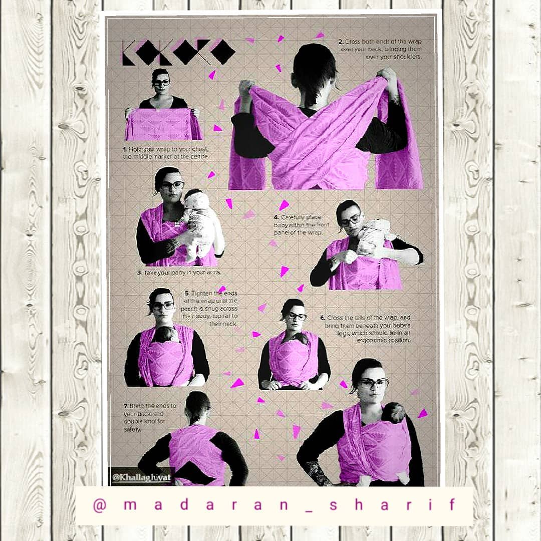 . بچههای شمام از صدای جاروبرقی میترسن؟😅 یا فقط بچههای من اینطورین؟!😯 . . عباس از اول نسبت به صداها خیلی حساس بود، خصوصا صدای جاروبرقی، خیلی از صداش میترسید و گریه میکرد، تا یه مدت اصلا نمیشد توی بیداریش جاروبرقی بکشم. . اما جدیدا یاد گرفته خودش میره توی اتاق، درو میبنده تا من جارو بکشم و صداش اذیتش نکنه.😆 هر دو دقیقه یک بار هم سرشو از لای در میاره بیرون میپرسه تموم شد؟!😃 یا میگه صداشو کم کن من بیام جارو کنم.😆 . . نکتهی غم انگیزش اینجاست که فاطمه هم چند وقته از صداش میترسه و بغض میکنه و با سرعت، چهاردست و پا میاد طرفم که بغلش کنم.😢 . . به خاطر همینم اکثرا جمعهها با کمک باباشون جاروبرقی میزنیم و وسط هفته با کمک بچهها جارو نپتون.😅 . ولی دیروز به لطف غداخوردن عباس (در حال دویدن البته😉)، خمیربازیش (که ذرات خمیر رو تو خونه پخش کرده بود) و قیچی بازیش (که کلی کاغذ ریز ریز ریخته بود تو خونه)، چارهای نموند جز جارو برقی.😆 . عباس که مشکلی نداشت چون میرفت تو اتاق، فقط مشکل فاطمه بود که موقع جارو کشیدن بغل میخواست.😯 . و اینجا بود که راهکار عمه جانم (عمه بزرگم که بهشون میگیم عمه جان) به دادم رسید.😅 . بستن بچه به پشت با چادر رنگی.😍 . این روشو چند وقت پیش به صورت غیر حضوری و با فیلمی که با کمک مامانم و دختر عمهم تهیه شده بود، بهم آموزش دادن.😁 . خیلی خوبه برای مواقع اضطراری.😍 البته این کار قدیما خیلی عادی بوده. حتی سر مزرعه و موقع نون پختن با تنور!! اینم یکی از رموز سبک زندگی مادران دو نسل قبل ماست که واقعا حیفه اگه منتقل نشه به نسلهای بعد.😁 . . شما هم اگر مامانبزرگ یا خاله و عمهی بزرگ دارید، ازشون بخواید این روش رو بهتون یاد بدن. مخصوصا برای بچههای بغلی زیر یک سال خیلی خوبه.☺️ . الانم شاید دیده باشید خانمهای دستفروش توی خیابون و یا مترو بعضا از همین روش استفاده میکنن.😇 . . پ.ن : یه روش دیگه هم هست که با یه پارچه بلند میشه مثل آغوشی بچه رو بست. طبق جستجوهام این روش بیشتر برای بستن به جلو به کار میره و اسمش هم مراقبت #کانگوریی هست و از نوزادی قابل استفاده ست. فقط اینکه نسبت به وقتی که بچه به پشت بسته شده باشه، فشار بیشتری به کمر میاره. یه پارچه نخی (ترجیحا کشی) با عرض ۶۰ و طول ۴ تا ۵ متر لازم دارید. (میتونید سه تا شال نخی رو به هم بدوزید از عرض) و طبق روشی که توی عکس میبینید میتونید بچه رو ببندید. . . #پ_شکوری #شیمی۹۱ #روزنوشت_های_مادری #مادران_شریف