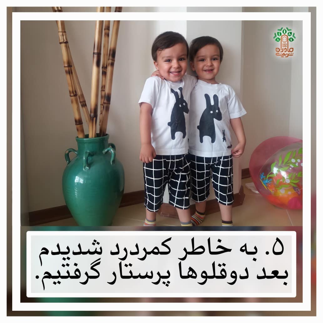. #ح_کرباسی ( مامان #حسنا ۹ساله ، #محمدحسین و #محمدهادی ۵ساله و #زینب ۱ساله) #قسمت_پنجم به خاطر کمردرد شدیدی که توی هشت ماهگی دوقلوها دچار شدم، همسرم پیشنهاد پرستار کودک رو دادن. خداروشکر بعد از اون مشکلات مالی اول زندگی، حقوق همسرم به قدم بچهها بیشتر شده بود و میتونستن هزینهش رو تأمین کنن. خیلی دنبال پرستار خوب گشتیم. میخواستم حتماً مذهبی و مستحق باشن.👌🏻 بعد کلی جستجو بالاخره پیداشون کردیم. یه جورایی از آشنایان هم بودن و باهاشون احساس راحتی داشتم. مذهبی بودن و خوشحال بودم به خاطر تاثیر مثبتی که روی بچهها داشتن.😇 همون خدایی که دوقلوها و سختیهای بارداری و هشت ماه اول و امتحان بیماری و کمر درد رو برامون خواسته بود، خودش هم طوری صحنه رو رقم زد که بتونیم یه پرستار خوب و مومن پیدا کنیم.🤲🏻 هر روز صبح تا ۵ عصر میاومدن. هم توی مراقبت از دوقلوها و هم توی کارهای خونه بهم کمک میکردن. اونجا حس کردم یه مقداری زندگیمون روی روال افتاد و خونه سر و سامون گرفت.😅 بعضی وقتها شب بچهها رو میبردم خونهی مامانم و اونجا میخوابیدیم. صبح فرداش که بچهها خواب بودن، من و همسرم میرفتیم کوه یا کافه و رستوران و سینما. این تفریحات دو نفره باعث میشد تجدید قوا کنیم و روحیهمون تقویت بشه. به پرستارمون هم میگفتم اون روز بیان خونهی مامانم. هم توی کارهای خونه به مامانم کمک میکردن و هم از بچهها مراقبت میکردن. منم تا حدی خیالم راحت میشد که زحمت زیادی به مامانم نمیدم. 🙂 تا حدود یک سال و هشت ماهگی دوقلوها پرستار داشتیم. بعدش که دیگه از آب و گل در اومدن نیازی به پرستار نبود. پسرها تقریبا دو ساله بودن که از طریق همسرم متوجه شدم قراره یه کلاس آموزش نقاشی دیجیتال برگزار بشه. کلاس ۱۲ جلسه دو ساعتی بود. قرار شد بچهها رو ببرم محل کار ایشون و خودم برم و دو ساعته برگردم.😀 شرکت توی این دوره برام خیلی مفید بود و همیشه بابتش از همسرم تشکر میکنم. دوقلوها چهار ساله بودن که تصمیم گرفتیم یه عضو جدید به جمعمون اضافه کنیم.😍 قصد داشتم بعد از سزارین دوباره زایمان طبیعی داشته باشم. گشتم و یه دکتر خیلی خوب و مهربون و مومن پیدا کردم و ایشون کمک کردن که بتونم دخترم رو طبیعی به دنیا بیارم.💪🏻 کلی نذر و نیاز و دعا کردیم که زینب به موقع به دنیا بیاد و مثل بچههای قبلیمون بستری نشه. خداروشکر همینطور هم شد. زینب خانوم صحیح و سالم آبان ۹۹ خانوادهی ما رو باشکوهتر کرد.😍 #تجربیات_تخصصی #مادران_شریف_ایران_زمین