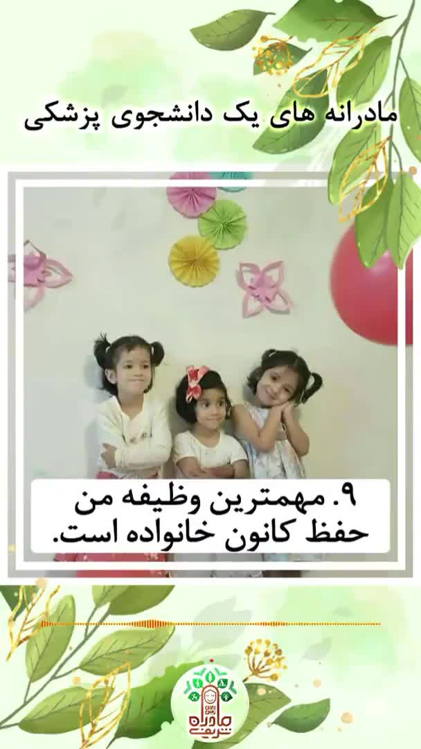 . #قسمت_نهم . #بنتالهدی (مامان سه دختر) . بیدار بودن بینالطلوعین رو هر کس تجربه کرده، میدونه که چقدر برکت داره. سعی میکنم حتما بیدار باشم. کارهای تفریح طورم رو میذارم برای بینالطلوعین! چون اگه کارهای جدی رو بخوام انجام بدم خوابم میگیره.😴 . گاهی پیش میاد که خوابم کم بوده و میدونم اگه بینالطلوعین بیدار بمونم ممکنه تا بعدازظهر توانم تموم بشه و نتونم برا بچهها وقت بذارم، بدون عذاب وجدان میخوابم!😉 چون میدونم برای انجام وظیفهی مهمتری نیاز به خواب دارم. . تفریح نباید فراموش بشه!👌 سعی میکنم حتما تفریح رو وسط مشغلههام جا بدم!ولو یه تفریح کوچک! مثلا میخوام سیب بخورم، اون سیب خوردن رو تبدیل میکنم به یه دورهمی کوتاه. یا میرم تو فضای سبز دانشگاه و یه کار لذتبخش انجام میدم. شاید پنج دقیقه وقت بگیره! ولی بازده کارمو بالا میبره.😊 . یکی دیگه از زمانهای طلایی برای من وقتایی هست که کشیک هستم چون زمان زیادی بیکارم! به جای گشت زنی تو فضای مجازی، میرم سراغ دفترچه و لیست کارها! مدیریت استفاده از فضای مجازی واقعاً برکت میده به وقتم! حقیقت تلخ روزگار ما وقتکشی و سوزاندن عمر تو فضای مجازیه!😬 . خونه که میام، بساط بازی و کاردستی و بدو بدو و هر نوع شلوغکاری دسته جمعی به راهه! خودم حساس نیستم و میذارم بچهها بریزن و بپاشن. اما قبل از اومدن همسرم با کمک بچهها و در قالب بازی خونه رو مرتب میکنیم! حداقل ظاهر قضیه رو حفظ میکنیم!😅 . هیچ دو آدمی شبیه به هم نیستن! و قرار نیست که زن و شوهر کاملا مثل هم فکر بکنن. از جلسات گفتوگو باید در راستای همسو شدن استفاده بکنیم. ولی نکتهی مهمتر تعامل صحیح با وجود تفاوتهاست. ضمن اینکه حتی اگر یک نفر تو همه زمینهها با من همسو باشه و دغدغههامو درک کنه، اگه نیازهای روحیش تامین نشه، یه جایی دیگه خسته میشه و نمیتونه همراهی کنه.☹️ . مثلاً من دغدغههای مادرم رو کاملاً میفهمیدم و راضی بودم از تلاشی که میکنن. ولی یه بازهای تو نوجوانیم پیش اومد که مادرم علیرغم دقتی که داشتن، از یک سری نیازهای روحیم غافل شدن و من اون موقع خیلی شاکی بودم از شرایط کاریشون! با اینکه عقلم توجیه بود، ولی احساسم همراهی نمیکرد! هرچند اون بحران هم به لطف خدا خیلی زود حل شد.😊 . این تجربه برام درس بزرگی داشت. اینکه به حساسیتهای همسرم احترام بذارم و نیازهای روحیشون رو تامین کنم، تا بتونیم با همراهی هم به اهدافمون نزدیک بشیم. دائما برای خودم یادآوری میکنم که مهمترین وظیفه من، حفظ کانون خانواده است.👨👩👧👧 . . #تجربیات_تخصصی #مادران_شریف_ایران_زمین