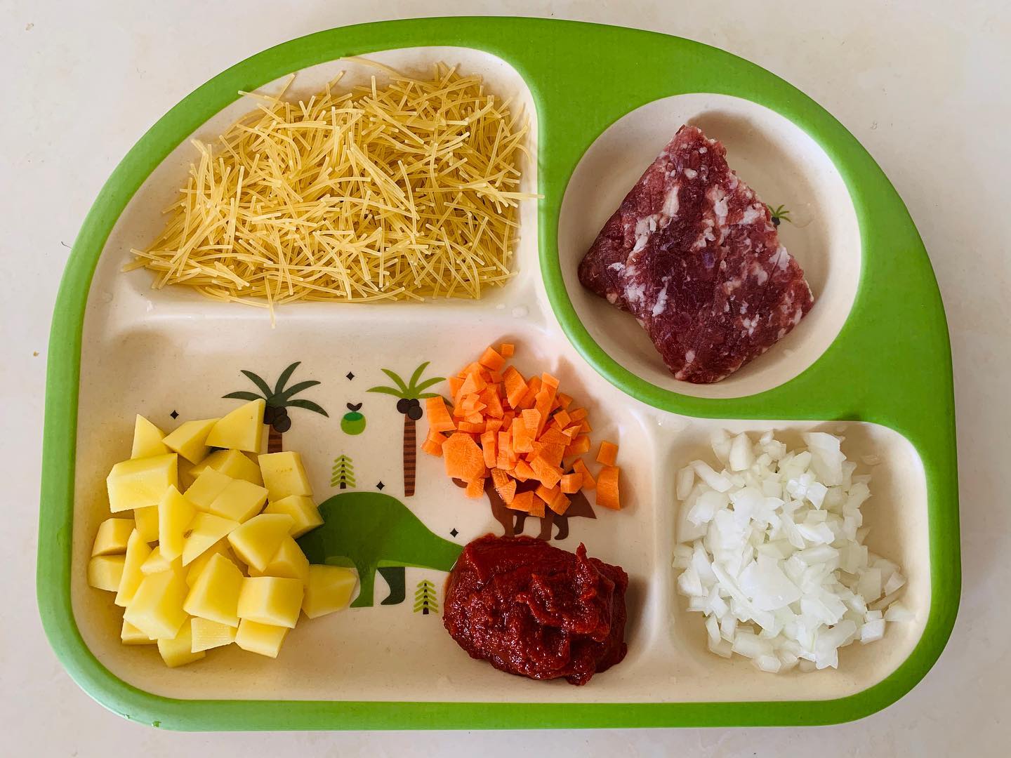 غذای کودک(٨+) *سوپ ورمیشل * ورمیشل یا ماکارونی سیب زمینی هویج پیاز رب خونگی یا پوره گوجه گوشت چرخ کرده ابتدا کمی پیاز رو با روغن زیتون تفت دادم بعدش سیب زمینی رو ریختم و اونم ی کم تفت دادم سپس گوشت چرخ کرده رو بامواد تفت دادم ورب و هویج رو اضافه کردم دوتا استکان اب ریختم تا مواد خوب بپزه نیم ساعت اخر هم ورمیشل رو ریختم و گذاشتم بپزه. شما نسبت به ذائقه کوچولوتون میتونین آب دار یا کم آب بردارین. غذا هاتون رو برامون بفرستید تا واسه نی نی ها طبخ کنیم و لذت ببرن🌹🌹 #غذاي_كودك #غذای_سالم #سوپ #مادر #نوزاددختر #نوزادپسر #غذاي_خانگي #خوشمزها #ورميشل #غذاهای_خوشمزه#غذای_نوزاد_زیر_ده_ماه