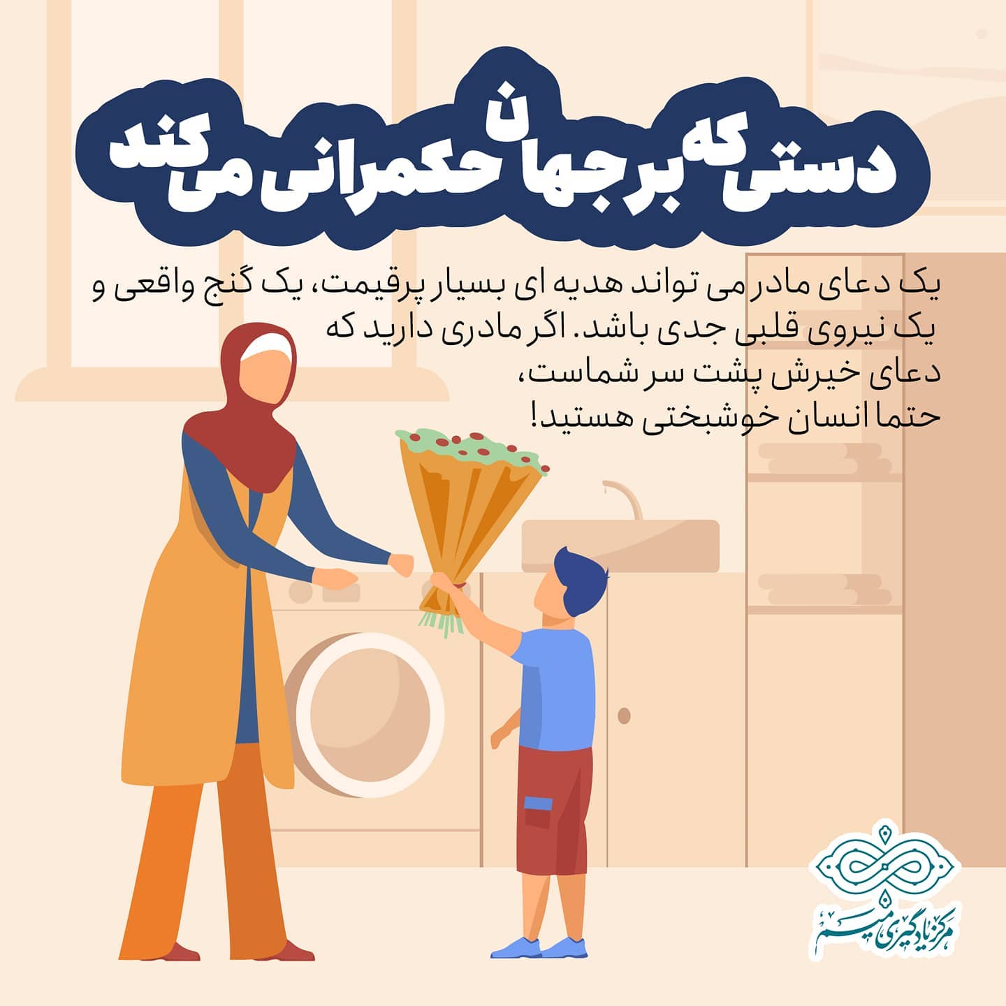 . 🔶مادران به ما می آموزند که به خودمان اعتماد و اعتقاد داشته باشیم. آنها می دانند برای داشتن فرزندانی قوی و کامل که تصور مثبتی از خودشان دارند، لازم است که آنها به خودش اعتماد داشته باشند. یکی از روش هایی که آنها استفاده می کنند تا اعتماد به نفس ما را افزایش دهند این است که آنها دائما تیزبینی و تیزهوشی ما را تایید می کنند. 🔶یک احساس اعتماد به نفس سالم می تواند باعث شود که فرد به موفقیت های بیشتری دست یابد و در جامعه بیشتر تجلیل شود. مادران به ما فضا می دهند تا به خودمان اعتماد داشته باشیم زیرا هیچ محدودیتی برای موفقیت و کارهایی بزرگی که می توانیم انجام دهیم در ذهنشان متصور نمی شود. |مرکز یادگیری میم 🌐 mimttc.ir 🆔 @mimTTC #حضرت_زهرا #روز_مادر #روز_زن #میم #یادگیری #مامان #مادر #اعتماد #اعتقاد #فرزند #اعتماد_به_نفس #موفقیت