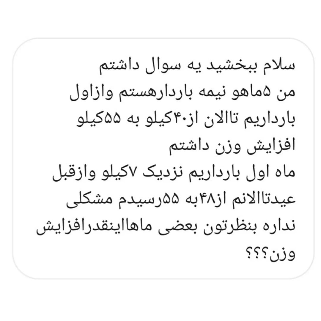 سلام مامانا 🔷️خیلیا در مورد اضافه وزن نرمال در بارداری سوال میپرسن 👇. 📍اضافه وزن نرمال در بارداری بر اساس شاخص توده بدنی(bmi) اون فرد مشخص میشه . 📍خانمی که قبل از بارداری وزن متوسط داشته، باید بعد از بارداری ۱۱ تا ۱۶ کیلوگرم، خانمهای کم وزن ۱۲-۱۸ کیلوگرم و خانمهای چاق فقط ۷-۱۱ کیلوگرم وزن اضافه کنند. 📍تعیین میزان افزایش وزن هر فرد هم بر اساس شاخص توده بدنی که تو استوری گذاشتم مشخص میشود . 📍پس خانمی با وزن نرمال قبل بارداری باید در طول بارداری ۱۱ تا ۱۶ کیلوگرم افزایش وزن میتونه داشته باشه ،که در سه ماهه اول بارداری ماهی ۱ تا دو کیلو و پس از آن به طور متوسط هفته ای نیم کیلو اضافه وزن داشته باشد. 🔷️در صورت اضافه وزن بیش از حد، درمانگرتون ممکن است کاهش وزن را توصیه کند. این کار تنها باید تحت نظارت ماما یا پزشکتون انجام شود و برای رفع اضافه وزن در بارداری لازم است خانمها از کاهش وزن یا تغییر خودسرانه رژیم غذایی بپرهیزند. . 📌شما در طول بارداری چقدر وزن اضافه کردید؟؟؟؟ . . مشاوره_زنان_بارداری_زایمان تعیین جنسیت جنین 👶 ویزیت آنلاین/حضوری/تلفنی @moshaver.mama . . #وزن_جنین #وزن_بارداري #وزنگیری #اضافه_وزن #اضافه_وزن_در_بارداری #bmi #شاخص_توده_بدنی