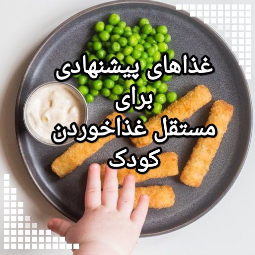 میوهها و سبزیجات: • هر میوهی تازهای که به آسانی در دست گرفته شود؛ مانند موز. #میوه را پوست بکنید و به صورت قطعات #انگشتی ببرید. سبزیحات مخصوصا #هویج به صورت تکههای نواری یا انگشتی (به قطعات خیلی کوچک نبرید. چون ممکن است در گلوی کودکتان گیر کند.) • پورهی #سیبزمینی غلیظ. غلات و حبوبات: • تکههای کوچک خشک و بدون شکر غلات • تکههای گرد و کوچک #برنج پخته شده (ترجیحا سبوسدار) • قطعات انگشتی نان گندم سبوسدار یا #بیسکویت گندم سبوسدار (نه نانی که همراه با دانههای غلات است) •تکههای #ماکارونی پروتئین: • تکههای پنیر نرم مثل پنیر گودا • #نان سوخاری با پنیر انگشتی • تکههای کوچک همبرگر • #پنیر نرم کمچرب که روی نان گندم سبوسدار مالیده شده باشد. • انواع گوشت در قطعات کوچک • فیله ماهی به صورت تکههای سفت • تکههای #تخممرغ کاملا آبپز شده منبع: اولین غذاها #غذای_کمکی #غذای_انگشتی