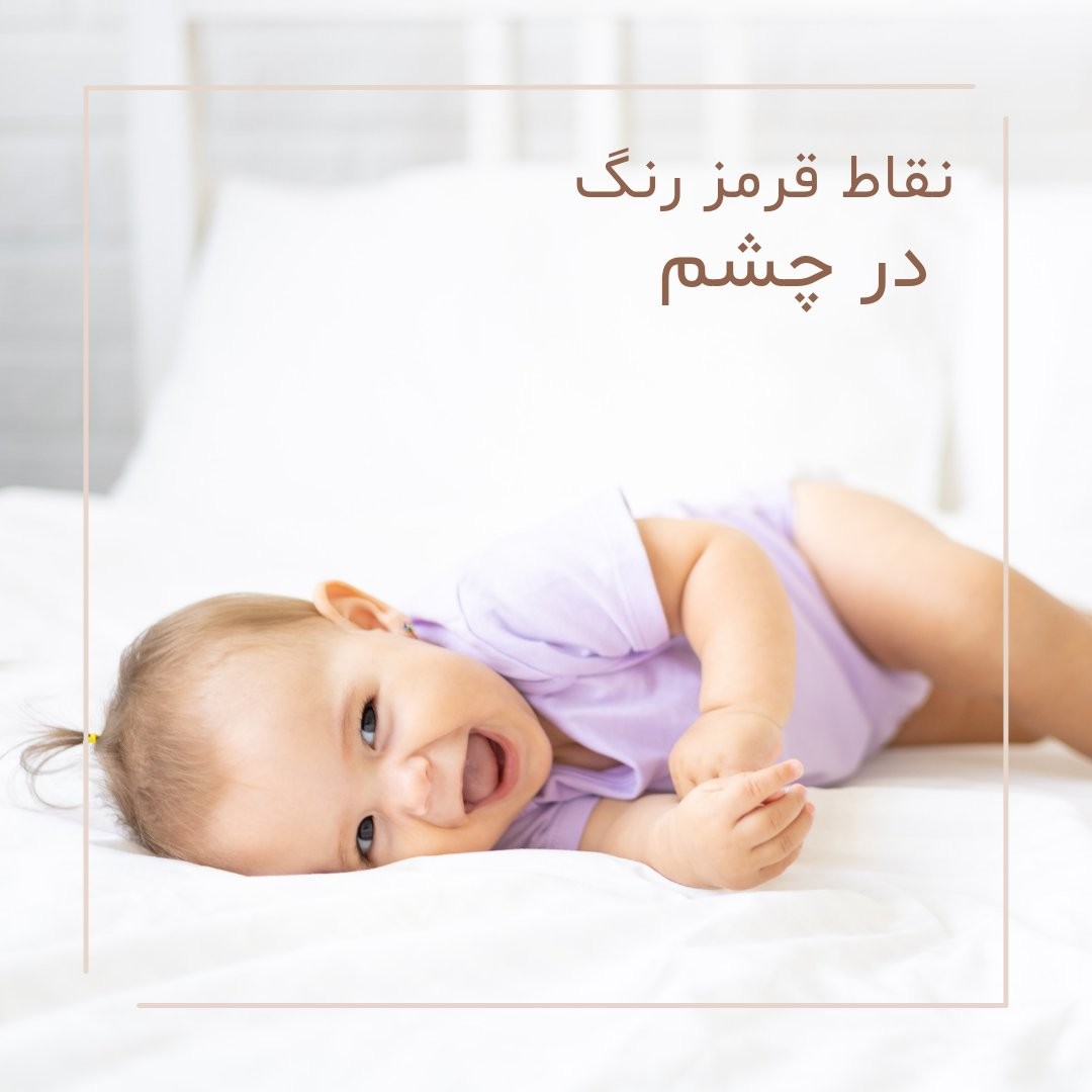 یکی از پیامدهای متداول تولد نوزاد ممکن است شکستن رگهای خونی کوچک در ناحیه سفید چشم (صلبیه) باشد که باعث ایجاد نقاط قرمز رنگ روشنی میشود. این نقاط قرمز رنگ خونریزی سابکانجانکتیوال نامیده میشود. این عامل از طريق افزایش ناگهانی فشار در چشم به هنگام عبور کودک از کانال تولد ایجاد میشود. از آنجایی که خون معمولاً در ظرف ۷ تا ۱۰ روز جذب میشود. میتوانید اطمینان کسب کنید که بروز نقاط قرمز رنگ موقتی است و نگرانکننده نیست. نوزاد شما در فاصله ۸ تا ۱۴ اینچی بهتر میتواند تمرکز کند فاصله شما از چشمان کودکتان به هنگام پرستاری کردن یا غذا دادن به او باید این اندازه باشد. نوزادان همچنین به حرکتها، نور، الگوها و شکلها توجه دارند و پس از گذشت چند هفته اول، به مرور توانایی دیدن و توجه آنها بهبود پیدا میکند. منبع: کتاب راهنمای مراقبت از نوزاد