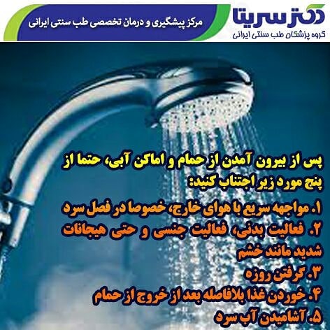 🚿 از انجام این کارها👆 بعد از #حمام و استفاده اماکن آبی، اجتناب کنید⛔️ . . 📚 از کتاب: #بهداشت_فردی (جلد ۸ از مجموعه کتابچه #سبک_زندگی_سالم) 🖋نوشته: #دکترفاطمه_مرادی #پزشک_متخصص_طب_ایرانی (MD_PhD) . . 🌹 لینکهای ارتباطی با دکتر فاطمه مرادی در اینستاگرام، تلگرام و سروش: @drfamoradi . . #بهداشت_حمام_مرادی #روش_زندگی #سبک_زندگی #حفظ_الصحه #حفظ_سلامتی #سلامت #پاکسازی #طب_سنتی #طب_سنتی_ایران #طب_سنتی_ایرانی #طب_ایرانی_اسلامی #طب_سنتی_اسلامی_ایرانی #دکتر_فاطمه_مرادی #دکتر_طب_سنتی #دکترفاطمه_مرادی_طب_سنتی #متخصص_طب_ایرانی #متخصص_طب_سنتی