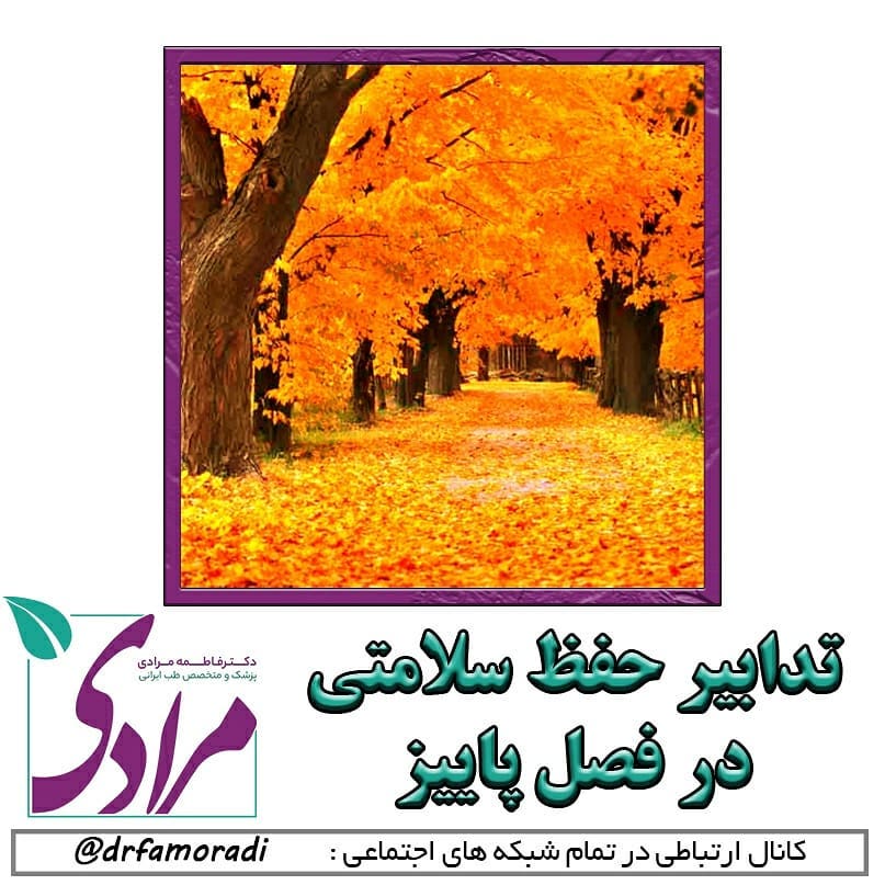 . ________________________ 🍁 تدابیرحفظ سلامتی در فصل پاییز 🍁 🍂 پاکسازی: در این فصل که هوا متغیر است، باید بهداشت را بسیار مراعات کرد. استفراغات (پاکسازی بدن از مواد زائد) در این فصل تنها به شرط ضرورت باید انجام شود، بهترین آن ها نیز اسهال ملایم و فصد مختصر است. البته با توجه به متون اسلامی در ماه دوم پاییز رومی که با نام «تشرین اول» شناخته میشود توصیه شده است که در حد امکان فصد انجام نشود. عمل قی (خروج مواد از معده یا همان استفراغ امروزی) نیز مناسب این فصل نمیباشد. 🍂 تغذیه: در بحث تغذیه توصیه به پرهیز از خشک کننده ها مانند ادویه خشک و همچنین پرهیز از سرد کننده ها مانند آشامیدن آب سرد شده است. در ماه سوم فصل پاییز در تقویم رومی با نام «تشرین آخر» توصیه به مصرف آب نیم گرم در هنگام صبح شده است. در این فصل مصرف غذاهای مرطوب مایل به گرم و غذاهای گرم مانند گوشت بره، و مرغ چاق مفید شناخته شده است. از شیرینی هایی که از مغز پسته و بادام و شکر تهیه شده است میتوان استفاده کرد. خوردن میوه های سرد و تر در این فصل توصیه نمیشود و از بین میوه ها، خربزه، به، سیب ، انار و گلابی با مزاج این فصل سازگارتر است. در ماه «تشرین آخر» از مصرف سبزی هایی مانند کرفس، تره تیزک و نعناع نهی شده است. 🍂 فعالیت بدنی: دیگر اعمال خشک کننده مانند افراط در اعمال جنسی و اعمال سرد کننده مانند حمام آب سرد و خوابیدن در جای سرد را نیز باید به کلی کنار گذاشت. همچنین از خواب با شکم پر نیز اجتناب باید کرد. استحمام بصورت یکروز در میان و یا حمام در آب نیم گرم برای این فصل مناسب تر است. البته در تدابیر ماه ایلول که ماه اول پاییز رومی است و تشرین آخر که ماه سوم پاییز رومی است، از زیاده روی در استحمام نهی شده است. 🍂 تدابیر دیگر: میتوان برای پیشگیری از خشکی بدن را با روغن بنفشه و بادام چرب کرد. بهتر است از هرگونه حالات روانی سرد و خشک کننده مانند غم و افسردگی دوری کرده و از عطریات و گلهای خوشبوی ملایم و دیگر حالات شادکننده برای ارتقای سلامتی استفاده کنند. #تدابیر_فصول_مرادی #طب_ایرانی #طب_سنتی #دکتر_مرادی #دکتر_فاطمه_مرادی #تدابیر_فصول #تدابیر_فصل_پاییز #قی #پاکسازی #پاییز #ایلول #تشرین_اول #تشرین_آخر #استفراغات #روغن_بنفشه #روغن_بادام #خشکی_بدن #حمام_نیم_گرم #استحمام