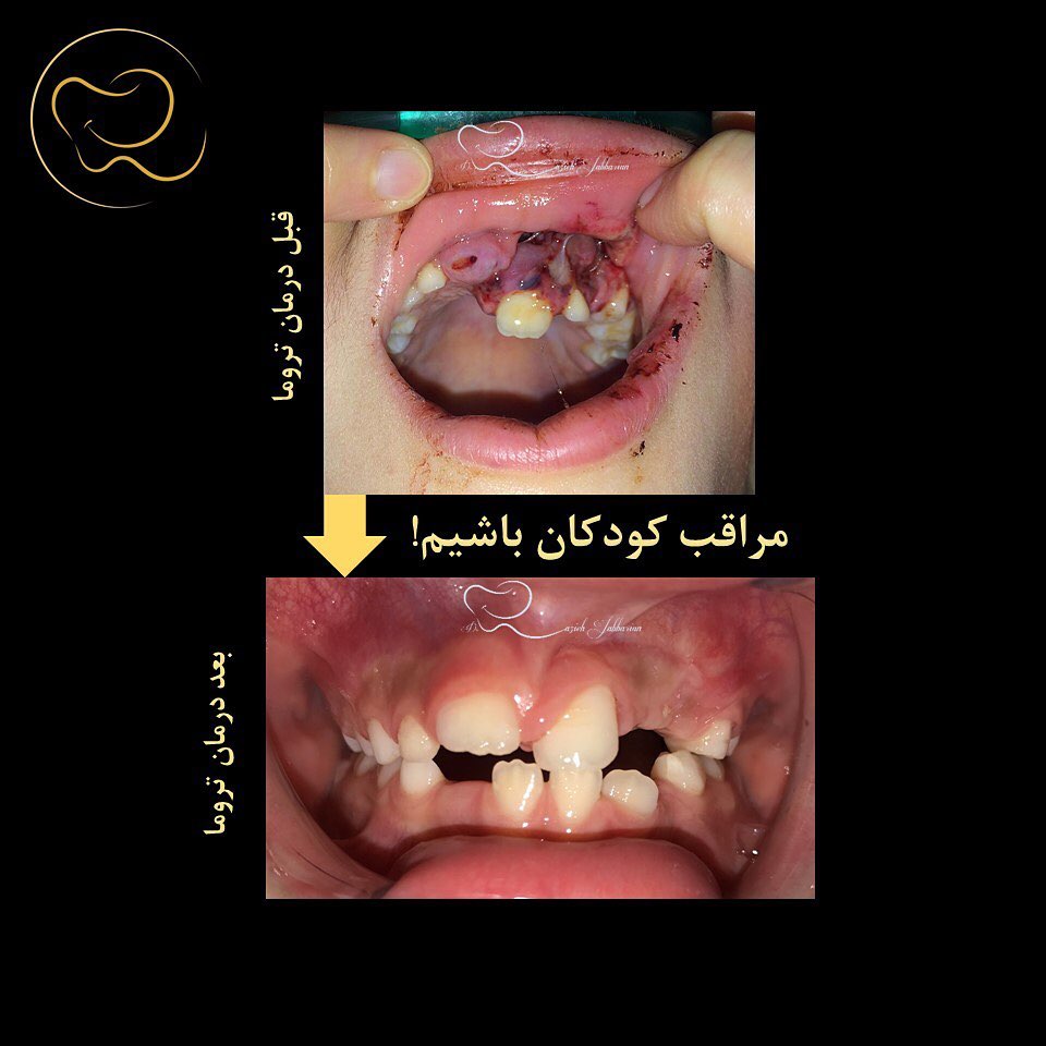 . مراقب لبخند فرزندان يكديگر باشيم! وظيفه همه ما به عنوان بزرگترهاي جامعه اينه كه مراقب كودكان جامعه باشيم پسر شش ساله عزيز ما با يك دوچرخه تصادف كرده و دچار آسيب جمجمه به همراه شكستگي آلوئول و لترال لاكسيشن سانترال چپ بالا شده بود. در مديريت همه انواع تروما توجه به دو نكته اهميت بسياري داره: - اول، مراجعه در اسرع وقت به دندانپزشك - دوم، تبعيت از دستورات مراقبتي به ويژه رعايت دقيق بهداشت . #trauma_children #alveolar_fracture #public_awareness #تروما #دندانپزشكي_كودكان #دندانپزشك_كودك_خود_باشيم