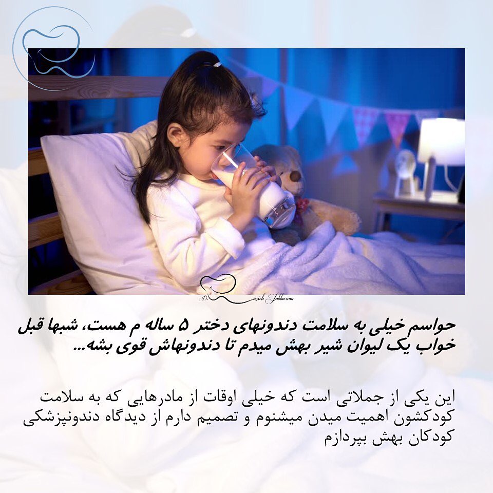 💤🍶 شير خوردن قبل از خواب نه تنها كمكي به سلامت دندونهاي فرزندمون نميكنه، بلكه تهديد مهمي براي دندونها محسوب ميشه. . . #شير #دندانپزشك_كودك_خود_باشيم#دندانپزشكي_كودكان #bedtime_milk . .