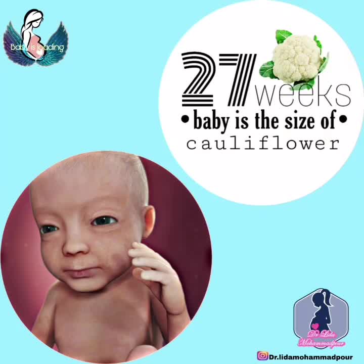 . #هفته_بیست_و_هفتم_بارداری جنین اندازه ی گل کلم😍 شما در سه ماه ی اخر بارداری هستین و کودک شما در این سه ماه وزن گیری میکند. با رشد کودکتان ، سوزش معده ، افزایش وزن ، کمر درد و تورم افزایش می یابد. بین هفته های ۲۴ تا ۲۸ ، از نظر #دیابت_بارداری بررسی می شوید. دیابت بارداری نتیجه تغییرات هورمونی در دوران بارداری است که در تولید انسولین و یا مقاومت در آن اختلال ایجاد می کند. در پایان هفته ی ۲۷ و طبق نظر پزشکتان،اگر گروه خونی شما منفی و همسرتان مثبت است #روگام تزریق کنید. در صورت مشاهده کاهش حرکت (کمتر از ۶ تا ۱۰ حرکت در ساعت) ، با پزشک خود تماس بگیرید. ورزش می تواند به شما کمک کند تا بهتر بخوابید و انرژی بیشتری داشته باشید. به یاد داشته باشید که همیشه قبل از شروع یک برنامه ورزشی جدید در بارداری با پزشک خود مشورت کنید. خوردن یک رژیم غذایی سالم و متعادل می تواند سطح انرژی شما را بهبود بخشد.